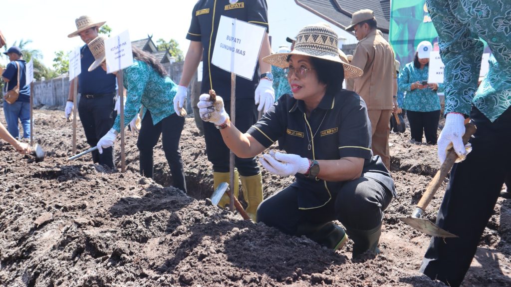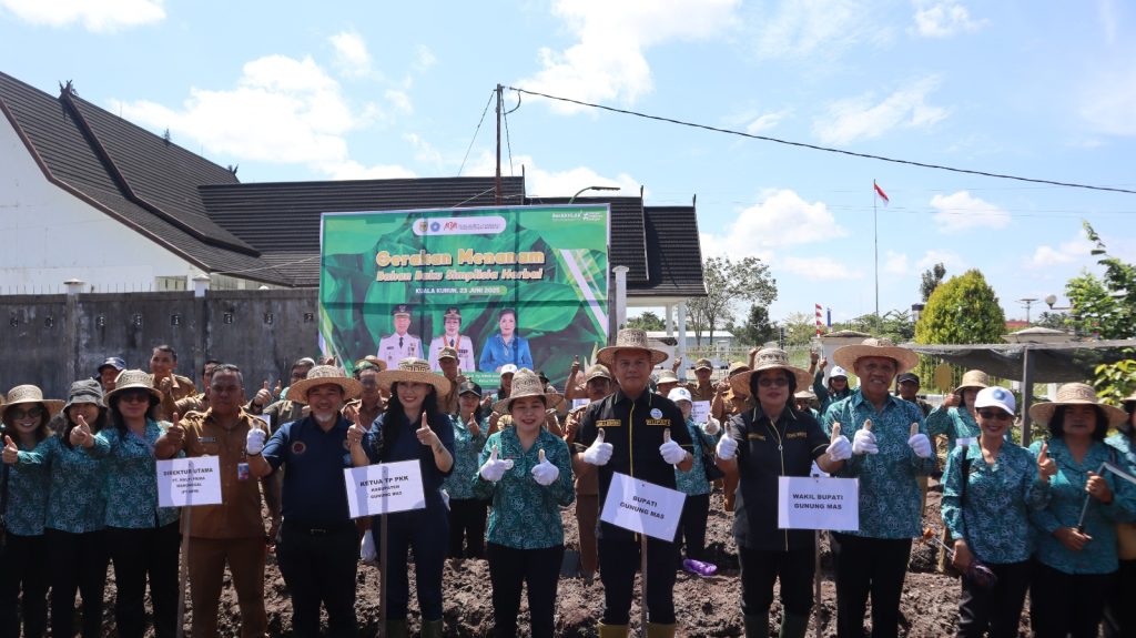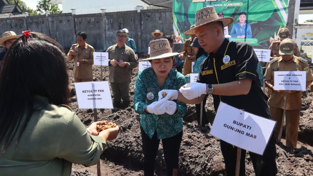 MMCGumas – Kuala Kurun, 23 Juni 2025 – Pemerintah Kabupaten Gunung Mas (Gumas) kembali menunjukkan komitmennya dalam mendorong kemandirian ekonomi masyarakat melalui program unggulan Tambun Bungai Mandiri. Senin pagi ini, Bupati Gumas Jaya Samaya Monong secara resmi memimpin kegiatan penanaman perdana tanaman implisia herbal berbahan baku kencur, yang digagas khusus untuk kelompok PKK dari tingkat kabupaten hingga dasawisma.