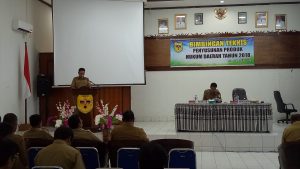 Bupati Gunung Mas yang diwakili Asisten I Setda Drs. Ambo Jabar dalam sambutannya menyampaikan “untuk sasaran utama dalam penyelenggaraan kegiatan ini sebagai bentuk peningkatan pemahaman Aparatur Sipil Negara (ASN) tentang penyusunan Keputusan Bupati agar dapat tersusun dengan terencana, terpadu dan sistematis sesuai dengan pedoman dan ketentuan yang telah di gariskan oleh peraturan perundang – undangan. Terkait pembentukan produk hukum Daerah yang merupakan bagian dari peraturan perundang undangan karenanya menjadi sebuah kewajiban dalam pembentukan produk hukum haruslah sesuai peraturan yang lebih tinggi” terangnya.