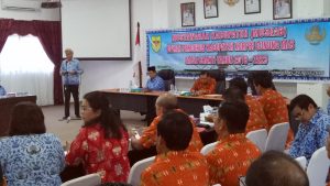 Gunung Mas – Pengurus Kabupaten Korps Pegawai Negri (KORPRI) Gunung Mas gelar Musyawarah Kabupaten (Muskab), Dewan Pengurus Kabupaten Korpri masa bhakti tahun 2018 – 2023, yang berlangsung di aula Lantai I kantor Bupati Gunung Mas .Sekretaris Daerah Drs. Yansiterson. M. Si, membuka rapat pertemuan yang didampingi Asisten II Ir. Yohanes Tuah. M. Si dan dihadiri Wakil ketua I Dewan Pengurus Korpri Provinsi Kalimantan Tengah Dr. Minsya T. Djaling. Ec. M. Kes dihadiri seluruh kepala SOPD dan Camat, kamis, (19/4/2018).