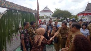 Dalam kunjungannya, kedatangan rombongan tersebut disambut baik oleh Wakil Bupati Gumas Ronny Karlos bersama jajarannya di halaman kantor Bupati Gunung Mas.