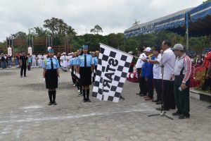 Bupati Gunung Mas dalam hal ini diwakili oleh Asisten III Agung, SE mengibarkan bendera start tanda dimulainya perlombaan gerak jalan antar sekolah, jumlah peserta regu SDN 18 regu baik putra maupun putri, SMP jumlah regu 37 baik putra maupun putri, SMA/SMK jumlah regu 15 baik putra maupun putri.