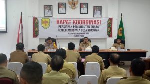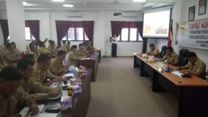 Rapat dan koordinasi penyelenggaraan pemilihan kepala desa serentak di wilayah Kabupaten Gunung Mas, dilaksanakan di ruang rapat lantai I Kantor Bupati pada selasa (23/10/2018) siang.