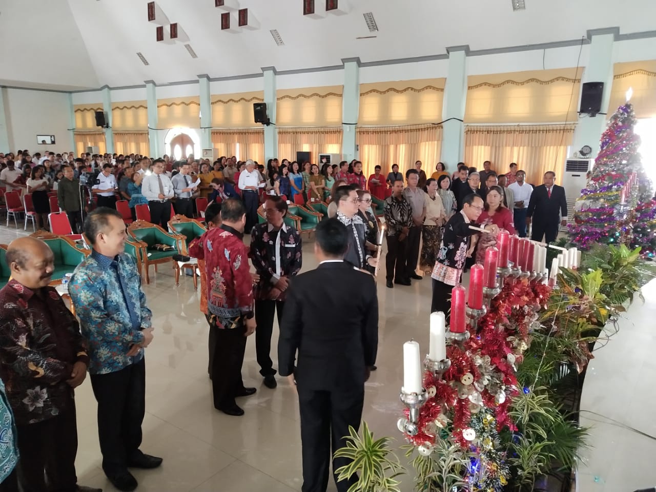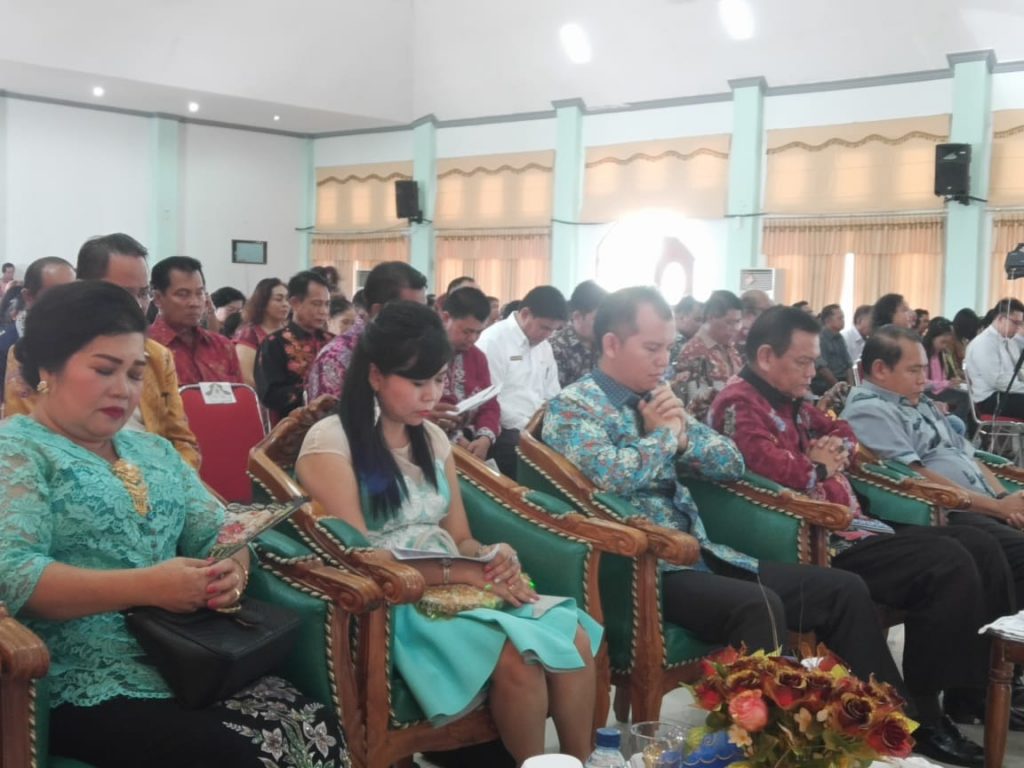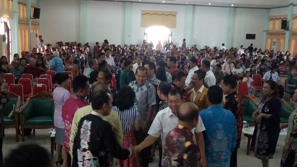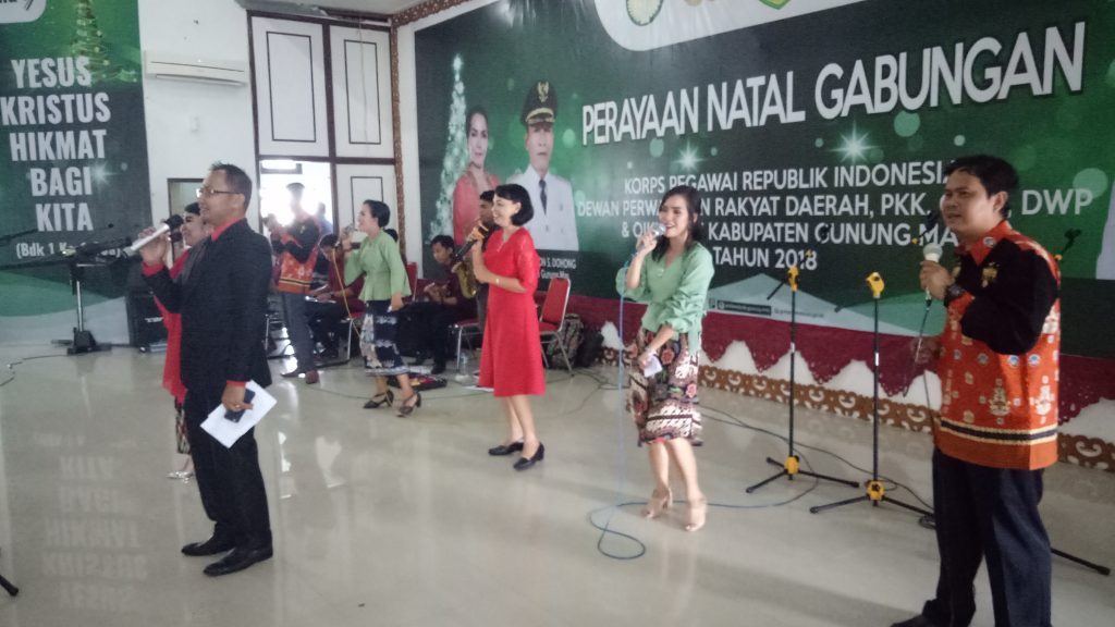 MMC. Gunung Mas – Perayaan Natal Gabungan KORPRI, DPRD,DWP, PKK,GOW, dan Oikumene, sekabupaten Gunung Mas (Gumas), dihadiri oleh Bupati Gunung Mas Arton S. Dohong didampingi ibu Ny. Apristini Arton. S. Dohong, Wakil Bupati Ronny Karlos beserta ibu Ny. Hera Maretina, Ketua DPRD H. Gumer, Bupati terpilih periode 2019-2024, Jaya S. Monong beserta ibu, Anggota DPRD, dapil I, dapil II, dapil III, Sekretaris Daerah Yansiterson Beserta Ibu, Perwakilan dari kepolisian, Perwakilan Kejaksaan Negeri, perwakilan dari pengadilan, Kepala OPD, ASN, dan masyarakat, yang dipusatkan di Gedung Pertemuan Umum (GPU) Damang Batu, rabu (19/12/2018).