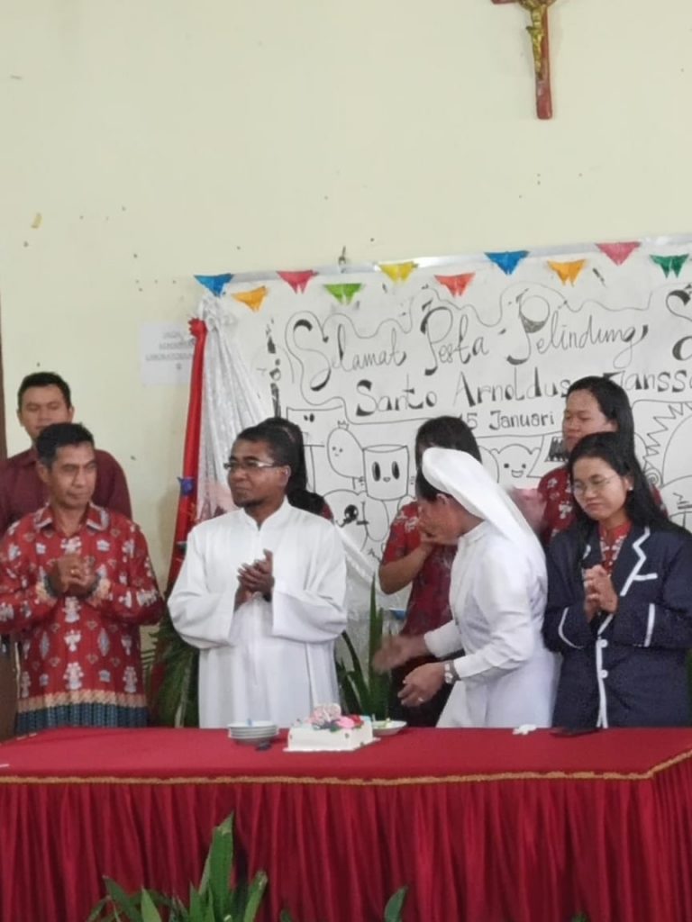 MMC Gunung Mas – Perayaan hari pelindung gereja dan yayasan Sr. Arnoldus Jenssen di selenggarakan cukup meriah di lingkungan SMA Katholik Sr. Arnoldus Jenssen, tepatnya di kota sinar Kuala kurun, selasa (15/1/2019).