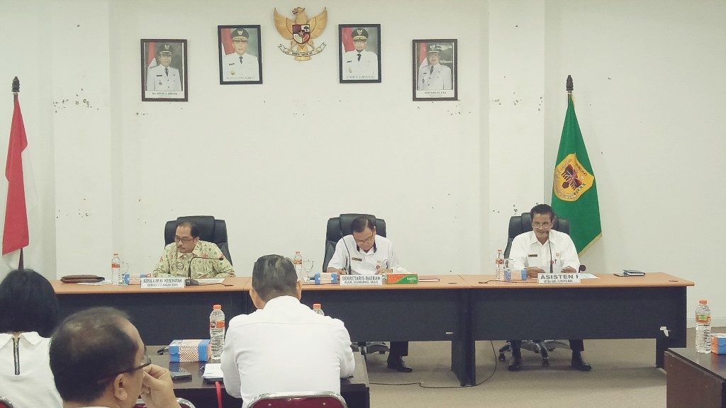 Gunung Mas – Rapat antara Pemerintah Kabupaten Gunung Mas dengan Badan Penyelengara Jaminan Sosial (BPJS) dalam menjalin kerjasama yang dilaksanakan di alula lantai I kantor Bupati Gunung Mas, Rabu (16/1/2019).