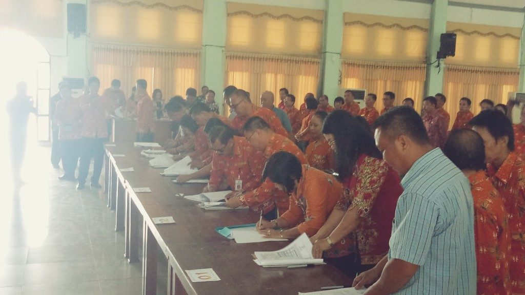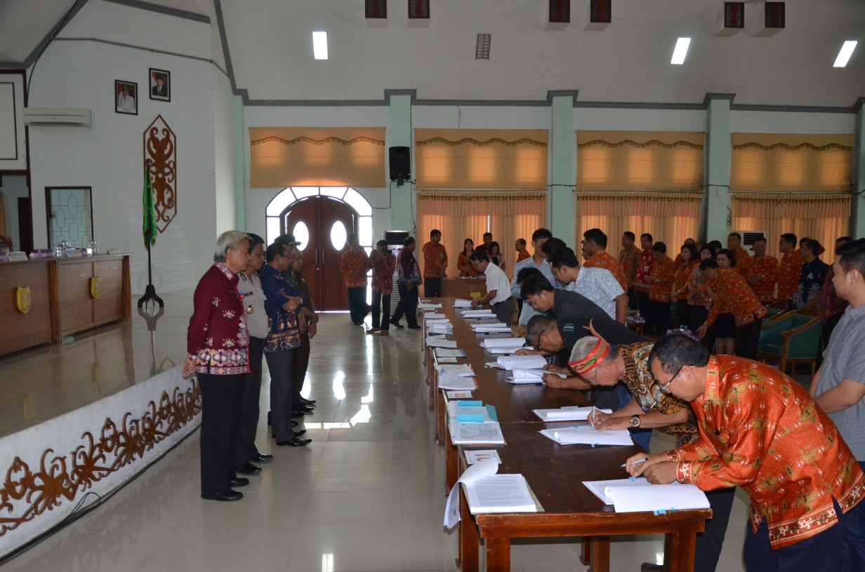 MMC. Gunung Mas Kuala Kurun – Pemerintah Kabupaten Gunung Mas ( Gumas ) melaksanakan acara dalam rangka KickOf penandatanganan kontrak pengadaan barang / jasa Pemerintah Kabupaten Gunung Mas di Gedung Pertemuan Umum Damang Batu, kamis ( 31/1/19).