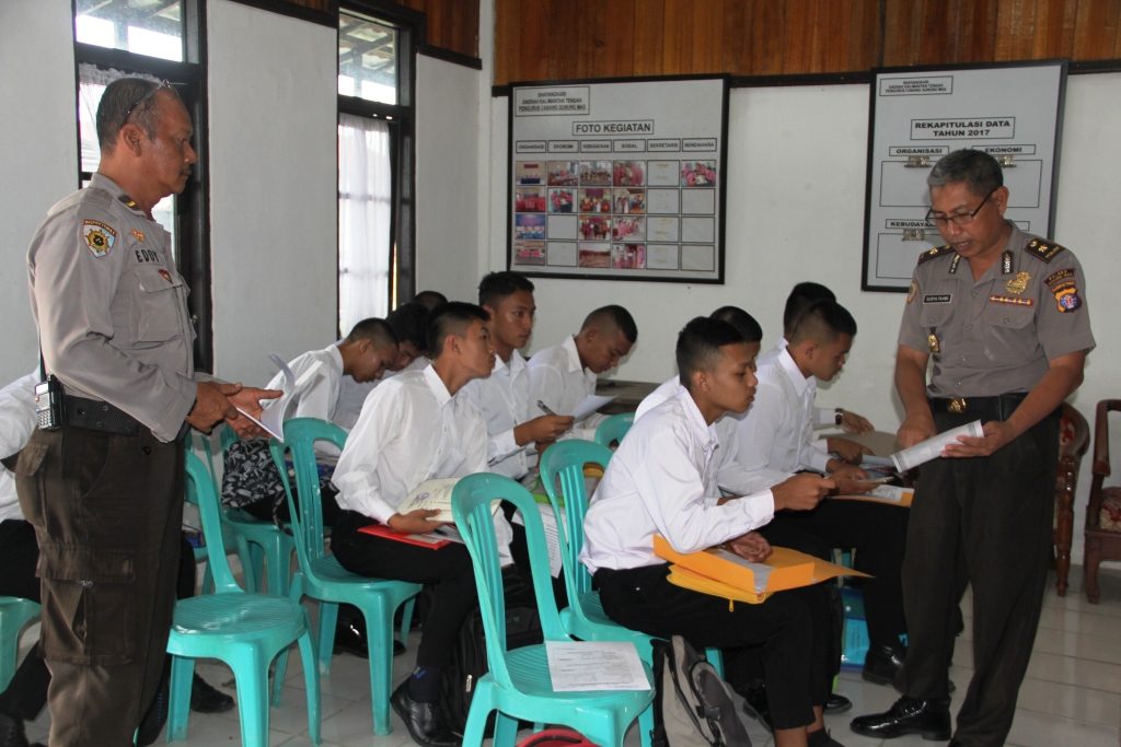 ARAHAN : Kabag Sumda Polres Gumas Kompol Surya Fahmi memberikan arahan kepada para pendaftar calon anggota polri, sebelum pelaksanaan tes rikmin awal, di Aula Bhayangkari Polres setempat, Rabu (27/3) pagi.