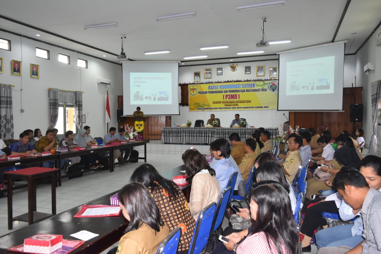 Gunung Mas – Pemerintah Kabupaten Gunung Mas (Gumas) melalui Dinas Pemberdayaan Masyarakat dan Desa melaksanakan rapat koordinasi P3MD Tahun 2019, kegiatan bertempat di Aula BP3D Kab. Gumas, Selasa (09/04/2019) pagi.