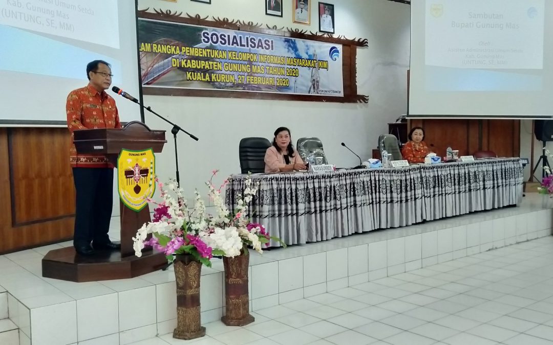 Gunung Mas – Pemerintah Kabupaten Gunung Mas (Gumas), melalui Dinas Komunikasi, Informatika, Persandian dan Statistik melaksanakan sosialisasi dan pemberdayaan Kelompok Informasi Masyarakat (KIM) di Kota Gunung Mas Kamis 27/02/ 2020.