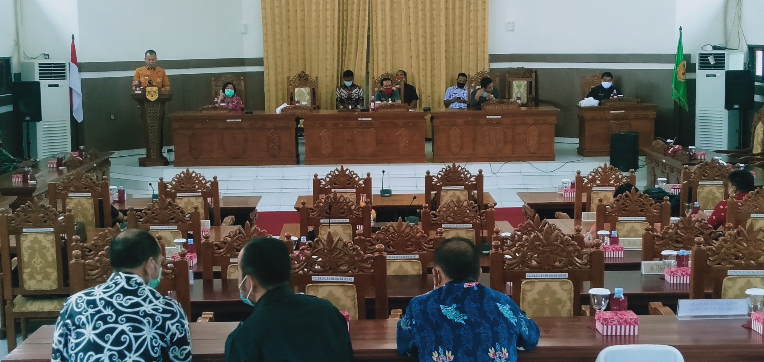 Kuala kurun – Bupati Gunung Mas Jaya Samaya Monong sampaikan Jawaban dan tanggapan Pemerintah Kabupaten Gunung Mas Atas Pandangan Umum Fraksi Fraksi Pendukung Dewan Perwakilan Rakyat Daerah Kabupaten Gunung Mas terhadap rancangan peraturan daerah, tentang Anggaran Pendapatan dan Belanja Daerah Kabupaten gunung mas tahun anggaran 2021 pada rapat parpurna ke 3 (tiga) masa persidangan I ( Kesatu )tahun sidang 2021, diaula sidang paripurna DPRD Kabupaten Gunung Mas, Jumat (13/112021) pagi.