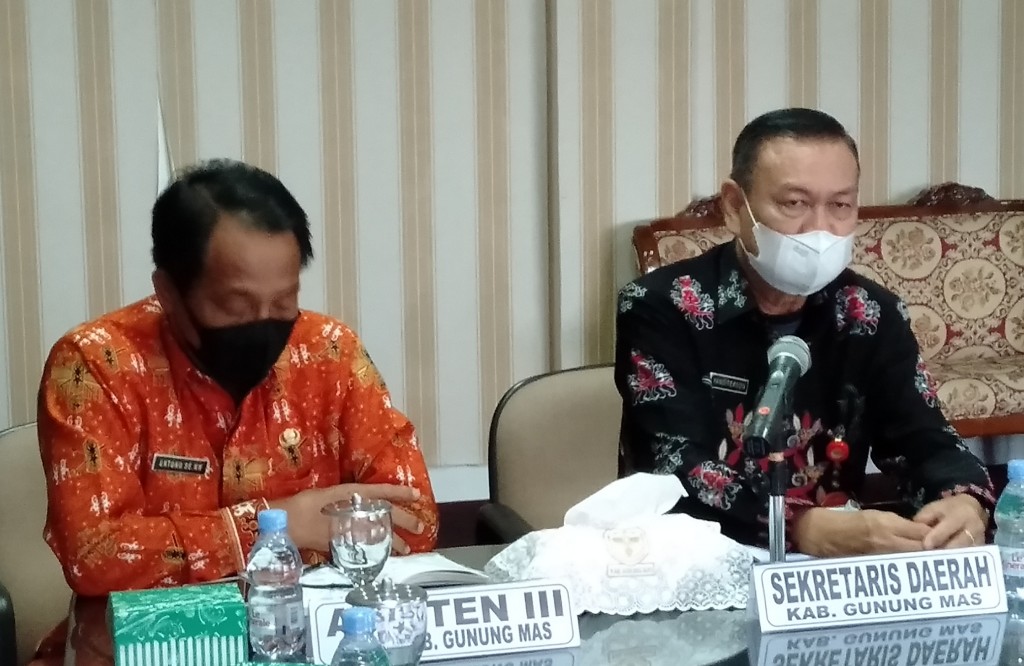 Kuala Kurun – Sekretaris Daerah (Sekda) Kabupaten Gunung Mas Yansiterson yang didampingi, Asisten III Setda Untung, mengikuti Rapat Koordinasi Penyederhanaan Birokrasi dan Pengadaan C – ASN Tahun 2021 secara virtual , diruang Rapat Sekda, pada kamis, (04/03/2021), siang.
