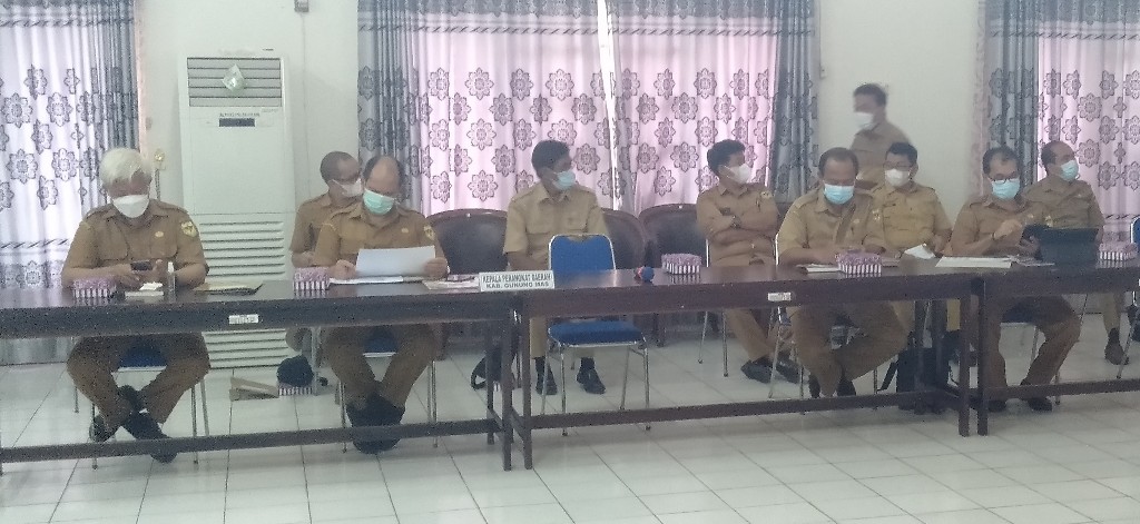 Kuala Kurun – Sekretaris Daerah (Sekda) Kabupaten Gunung Mas (Gumas), Yansiterson, memimpin Rapat Evaluasi Penerimaan Pendapatan Asli Daerah (PAD) Triwulan I Tahun Anggaran 2021, yang dilaksanakan di aula Bappedalitbang, senin (26/4/2021).