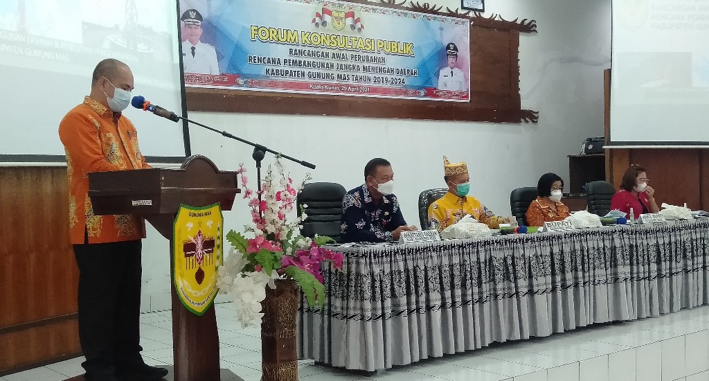 “Saya berharap peserta berpartisipasi aktif dalam memberikan kontribusi pemikiran penyempurnaan dokumen sebelum ditindak lanjuti pada tahap pelaksanaan selanjutnya oleh tim penyusun,” Kata Bupati Gumas Jaya Samaya Monong saat membuka Forum Konsultasi Publik Rancangan Awal Perubahan RPJMD tahun 2019 -2024, di aula Bappedalitbang, Kamis (29/4/2021).
