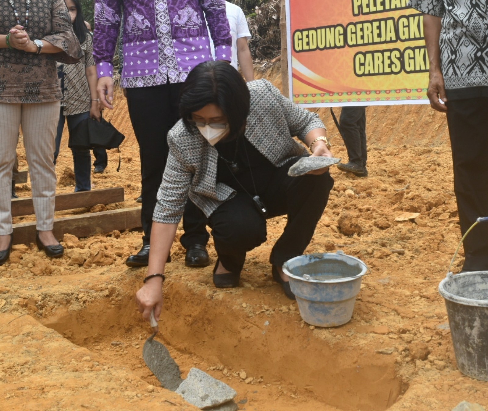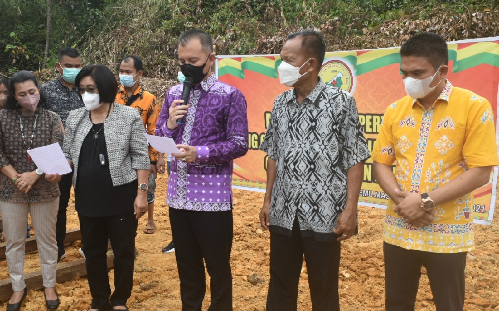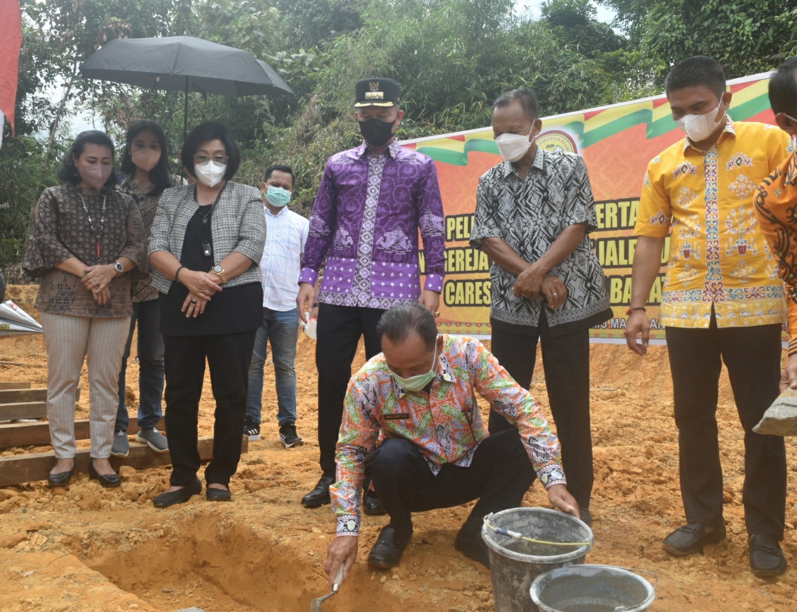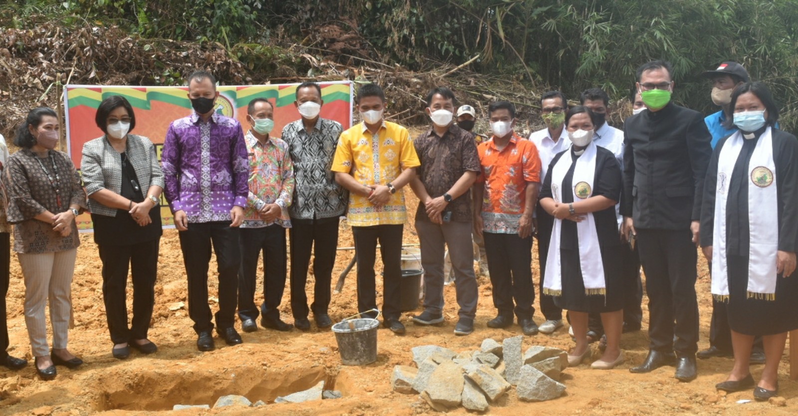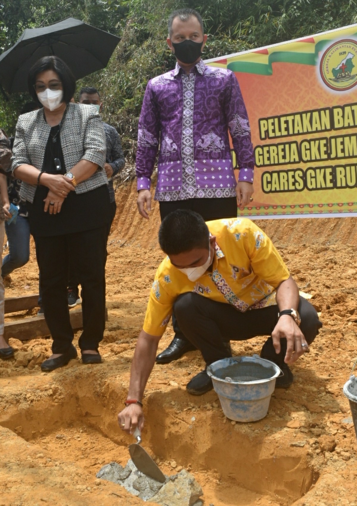 Kuala Kurun – Bupati Gunung Mas Jaya Samaya Monong, melakukan peletakan batu pertama Gereja Kalimantan Evangelis (GKE) Desa Jalemu Masulan, wilayah Kecamatan Rungan Barat, Minggu (24/10/2021).