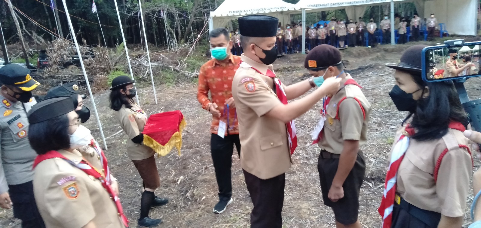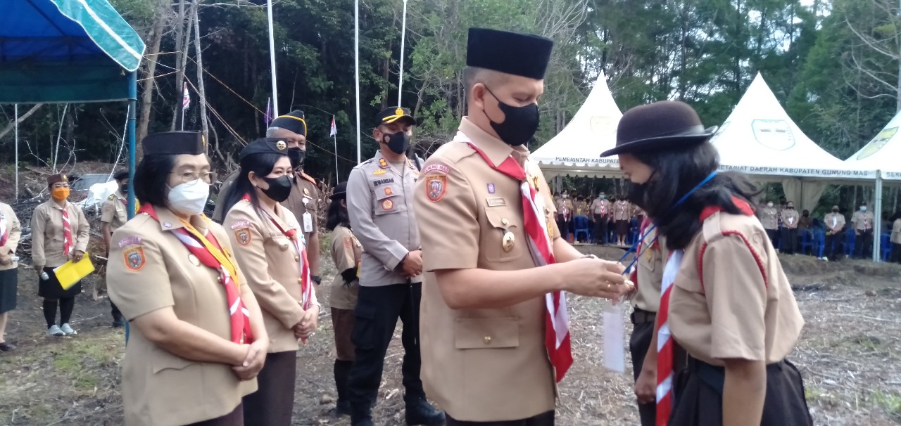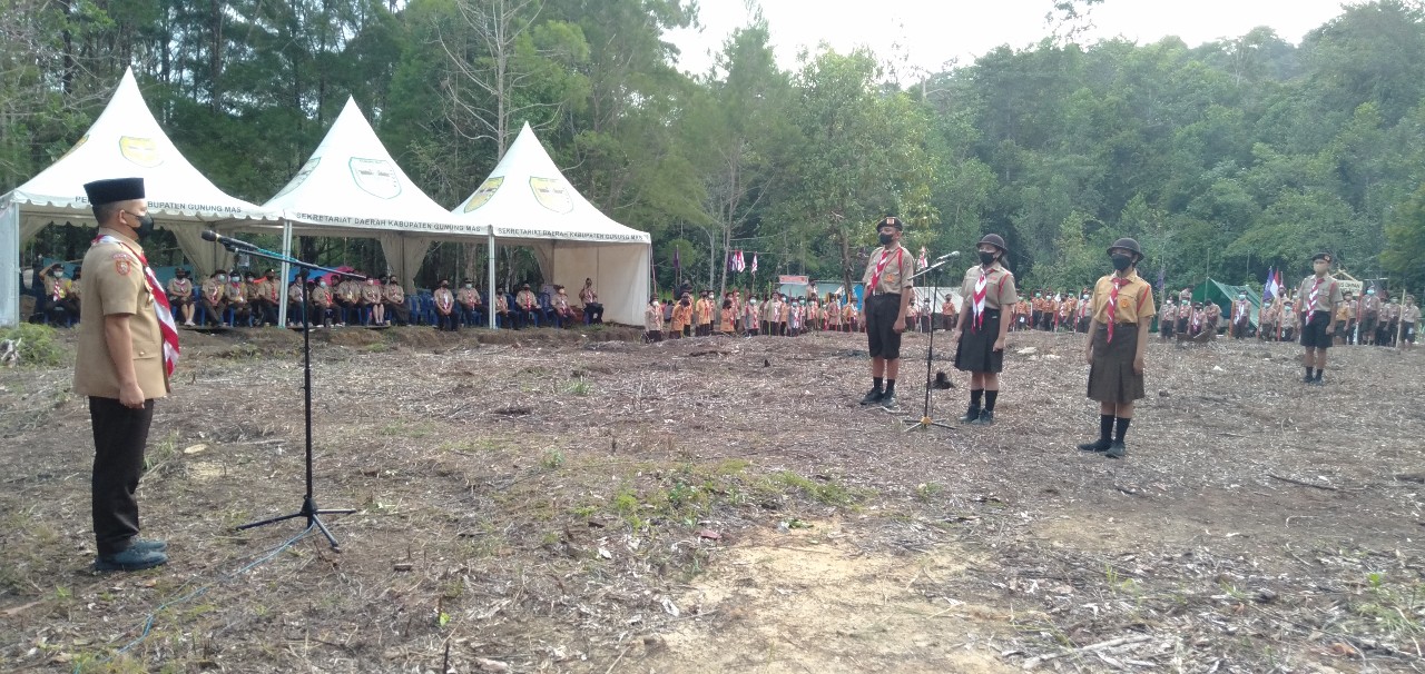 Kuala kurun – Bupati Gunung Mas Jaya Samaya Monong, dengan resmi membuka kegiatan Jambore Cabang, Kwartir Cabang Gerakan Pramuka Gunung Mas Tahun 2021, yang dilaksanakan di Taman Hutan Raya (Tahura) Lapak Jaru, Kamis (4/11/2021).