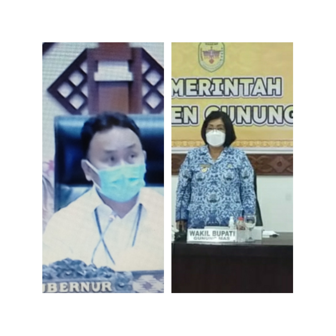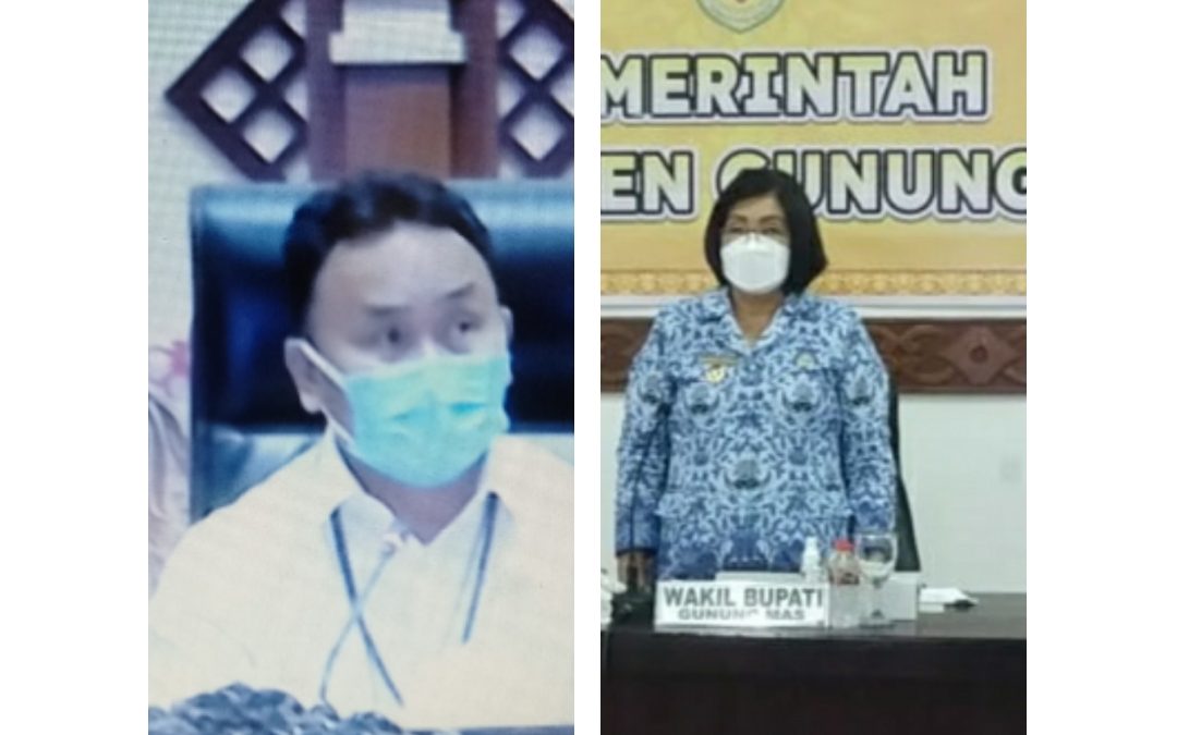 Kuala Kurun – Wakil Bupati Gunung Mas (Gumas) Efrensia L.P Umbing bersama Forkopimda Gumas, mengikuti Rapat Koordinasi kesiapsiagaan pemerintah daerah dalam menghadapi bencana alam (banjir) dan bencana non alam (Covid-19) di Provinsi Kalimantan Tengah (Kalteng), secara virtual, diruang rapat lantai I kantor Bupati Gumas, Rabu (17/11/2021).