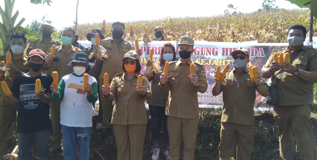 Progres pengembangan jagung hibrida per 12 Desember 2021 adalah seluas 274 hektare, luas panen 49 hektare, produktivitas rata-rata tiga ton per hektare dan produksi 195 ton dengan rincian 48 ton carry over tahun 2020.