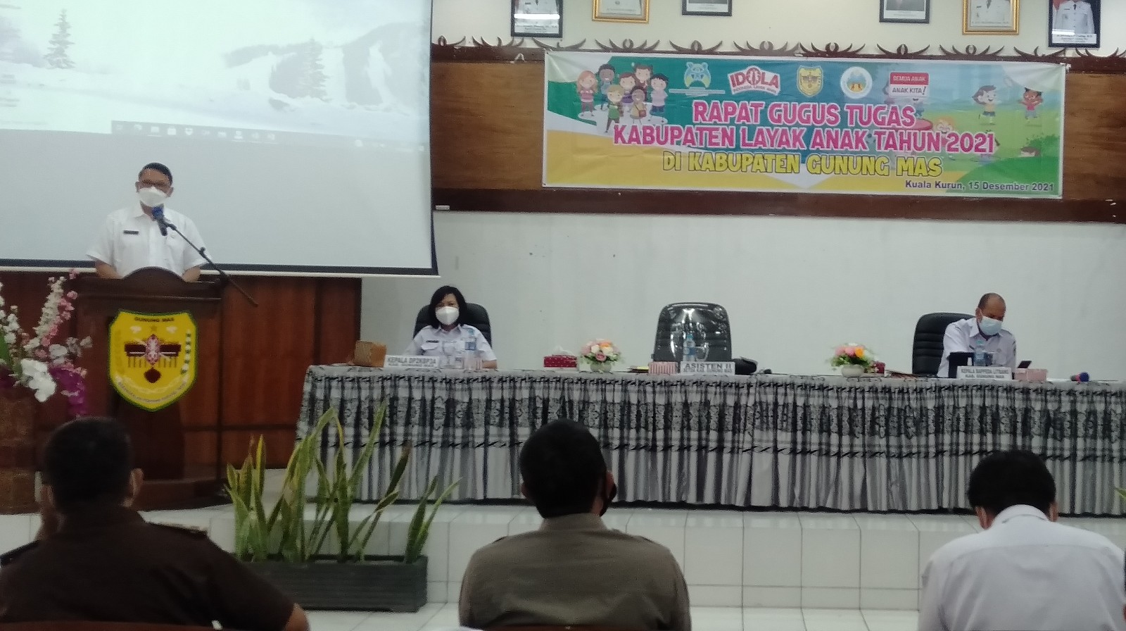 Hal itu disampaikan Sekretaris Daerah (Sekda) Kabupaten Gunung Mas (Gumas) Yansiterson, dalam sambutannya yang diwakili Asisten II Setda Richard, saat rapat Gugus Tugas KLA Tahun 2021, di aula Badan Perencanaan Pembangunan Daerah, Penelitian dan Pengembangan (Bappedalitbang), Rabu (15/12/2021).