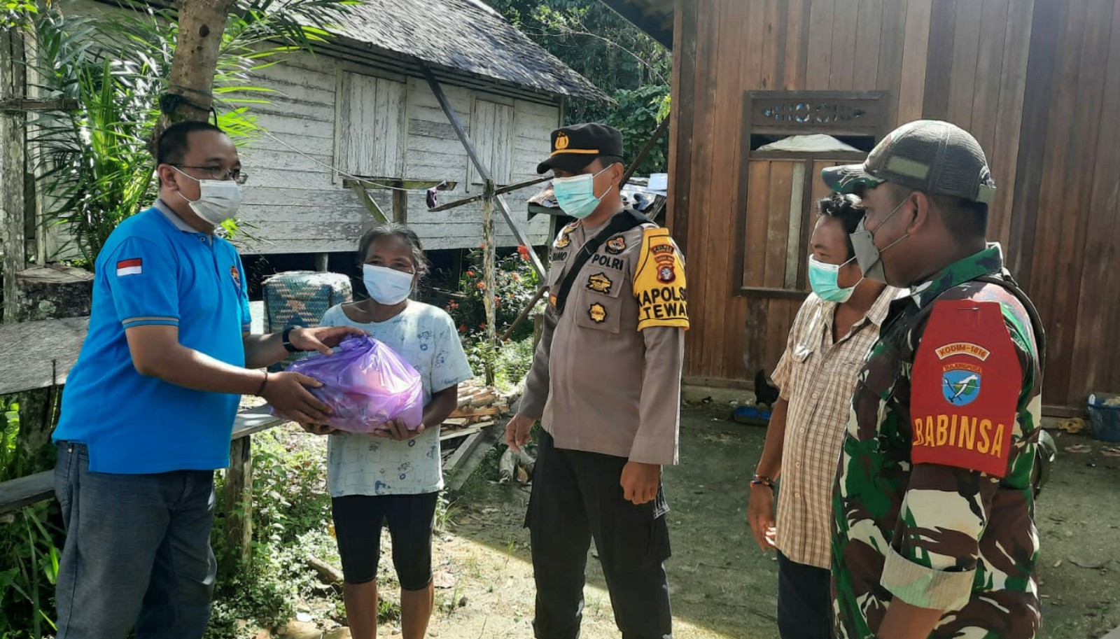 Gunung Mas – Kepolisian Sektor (Polsek) Tewah, Polres Gunung Mas (Gumas) bersama Persatuan Wartawan Indonesia (PWI) Kabupaten Gumas, dan TNI menyalurkan bingkisan kasih, berupa paket sembilan bahan pokok (sembako) kepada sejumlah warga di Desa Kasintu dan Kelurahan Tewah, Kecamatan Tewah.
