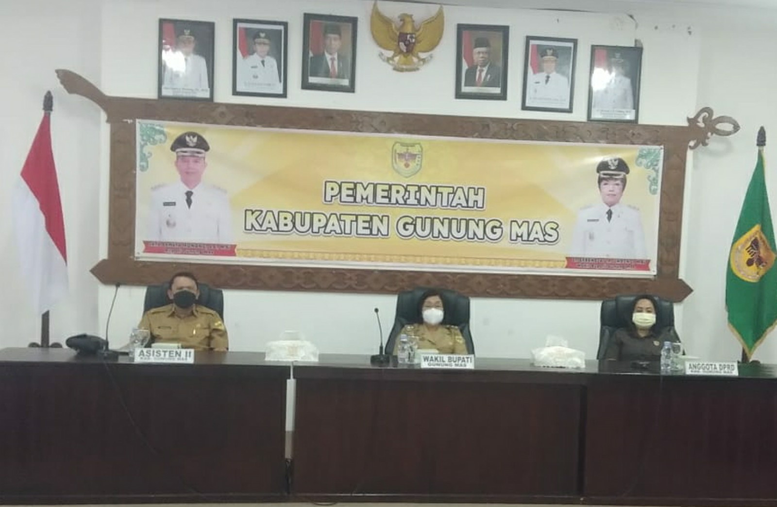 Gunung Mas – Wakil Bupati Gunung Mas (Gumas) Efrensia L.P. Umbing mengikuti rapat evaluasi program strategis pemerintah daerah bersama Menteri Dalam Negeri (Mendagri) yang dihadiri Gubernur dan Walikota se Indonesia melalui video conference, di ruang rapat lantai I kantor Bupati, (24/01/2022).