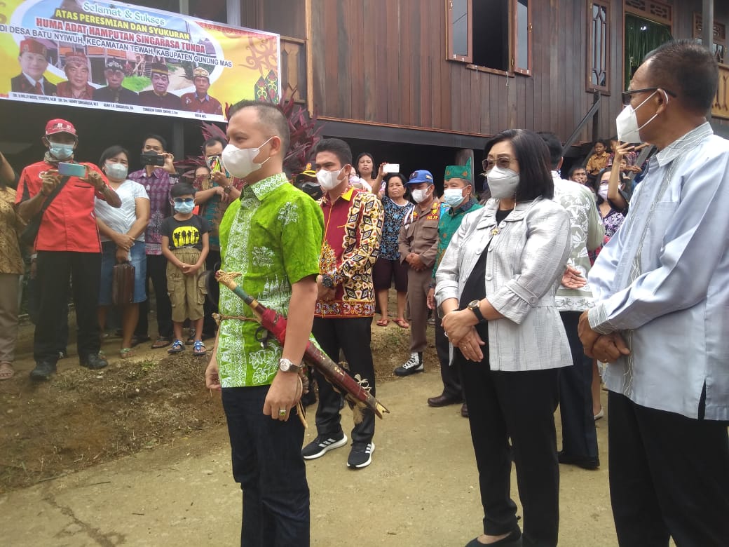 Kuala kurun – Bupati Gunung Mas (Gumas) Jaya Samaya Monong didampingi Wakil Bupati Efrensia L.P Umbing meresmikan Huma Adat Hamputan Singarasa Tunda, di Desa Batu Nyiwuh, Kecamatan Tewah, Sabtu (05/03/2022).