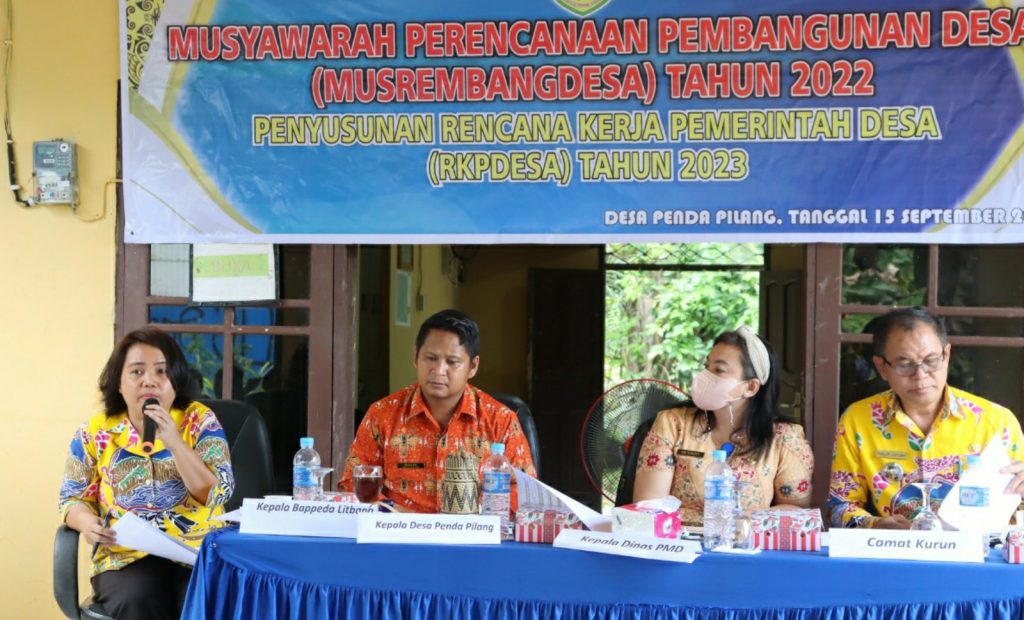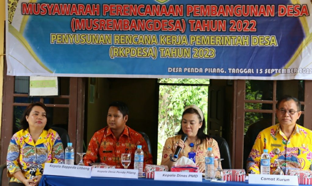 Kuala kurun – Desa Penda Pilang Kecamatan Kurun Kabupaten Gunung Mas melaksanakan kegiatan Musyawarah Perencanaan Pembangunan Desa (Musrenbangdes) yang dilaksanakan di kantor desa Penda Pilang, Kamis (15/9/2022).