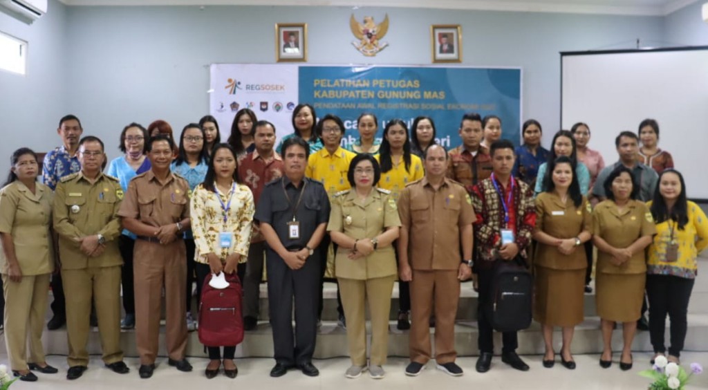 Kegiatan ini di fasilitasi oleh Badan Pusat Statistik BPS Kabupaten Gunung Mas, yang dihadiri Kepala Perangkat Daerah terkait dan yang mewakili, serta peserta petugas pendataan awal Regsosek.