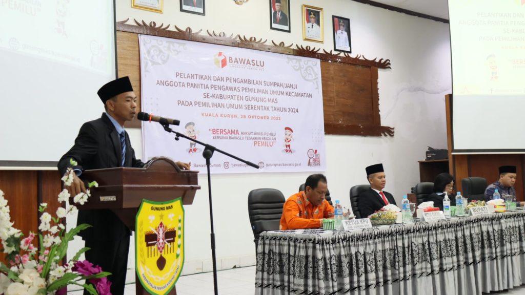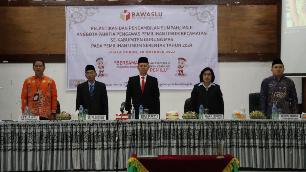 mmc.gunungmaskab.go.id – Kuala Kurun – Badan Pengawas Pemilu (Bawaslu) Kabupaten Gunung Mas melantik 36 anggota Pengawas Pemilu Kecamatan (Panwaslucam) dengan, rinciannya 20 laki-laki dan 16 perempuan.