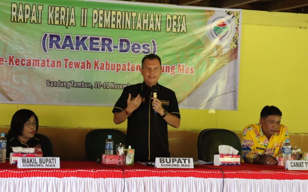 Hal itu Jaya ungkapkan dalam sambutannya pada kegiatan Rapat Kerja Pemerintah Desa (Rakerdes) II se-Kecamatan Tewah Kabupaten Gunung Mas di Desa Sandung Tambun, Kamis (10/11/2022).