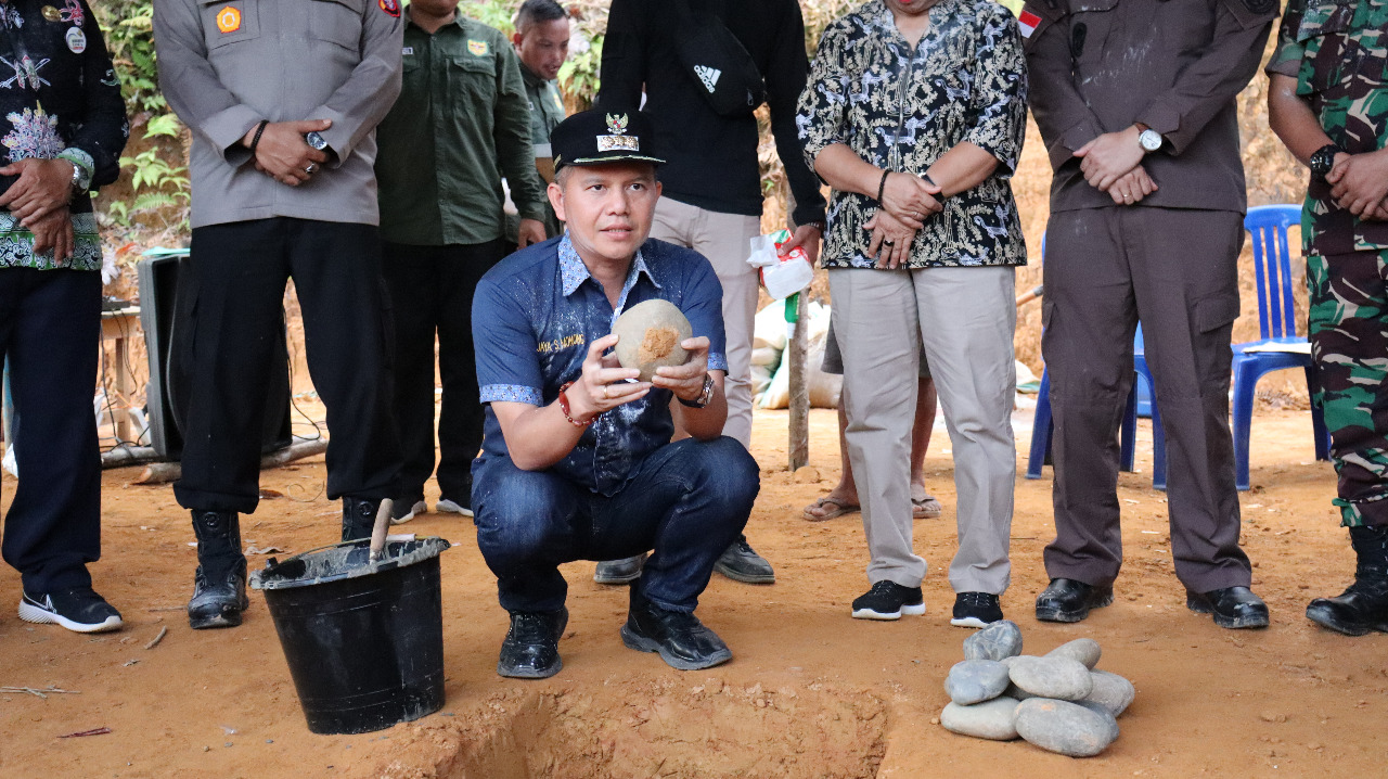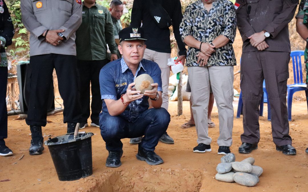 Kuala Kurun – Pemerintah Kabupaten Gunung Mas (Gumas) bersama unsur Forkopimda menghadiri kegiatan Peletakan Batu Pertama Pembangunan Gereja Parawei Jemaat GKE Tumbang Manyoi yang dilaksanakan di Desa Tumbang Manyoi Kecamatan Miri Manasa, Sabtu (12/11/2022).