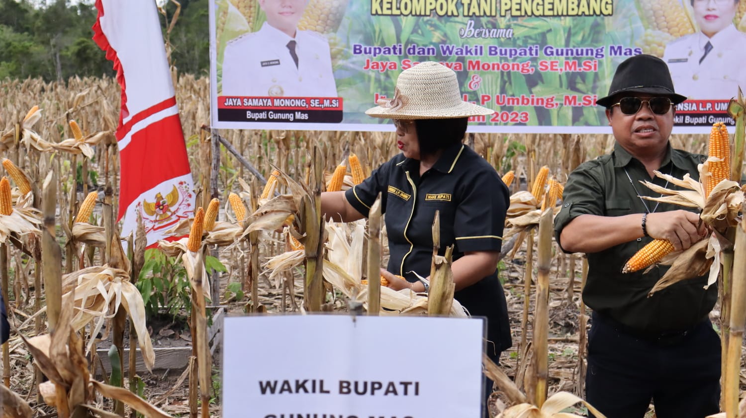 Kegiatan panen jagung hibrida dilakukan oleh Wakil Bupati Gunung Mas Efrensia L.P Umbing yang didampingi Forkopimda, Anggota DPRD Rayaniati Djangkan, Kepala Balai Perlindungan Tanaman Pangan dan Holtikultura Provinsi Kalteng, Camat Sepang, Lurah, Kepala Desa Kapolsek Sepang, Kepala Cabang Pembantu Bank Kalteng Sepang, dan Bank Mandiri.