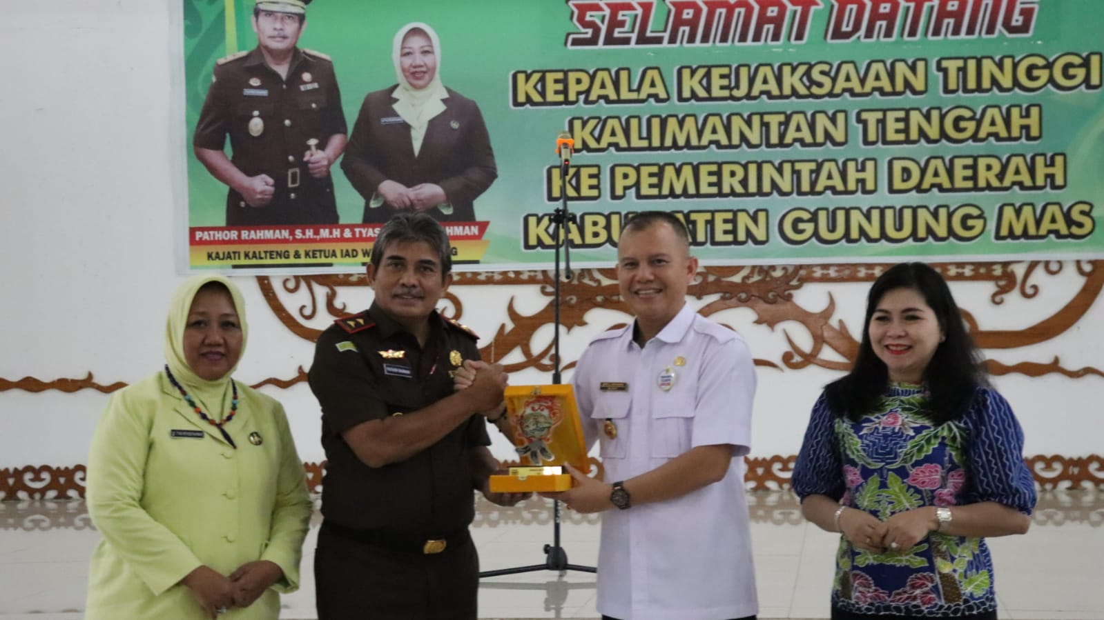 “Pemerintah Kabupaten Gunung Mas berharap sinergi baik dengan Kejaksaan Negeri Gunung Mas maupun dengan Kejaksaan Tinggi Kalimantan Tengah tetap terjalin dengan baik. Aparat kejaksaan diharapkan dapat memberikan pendapat – pendapat hukum maupun pendampingan hukum kepada Pemerintah Kabupaten Gunung Mas khususnya dalam penerapan regulasi – regulasi yang sesuai dengan ketentuan yang berlaku, sehingga program pembangunan di Kabupaten Gunung Mas dapat berjalan dengan baik dan kesejahteraan masyarakat dapat tercapai”, harapnya.