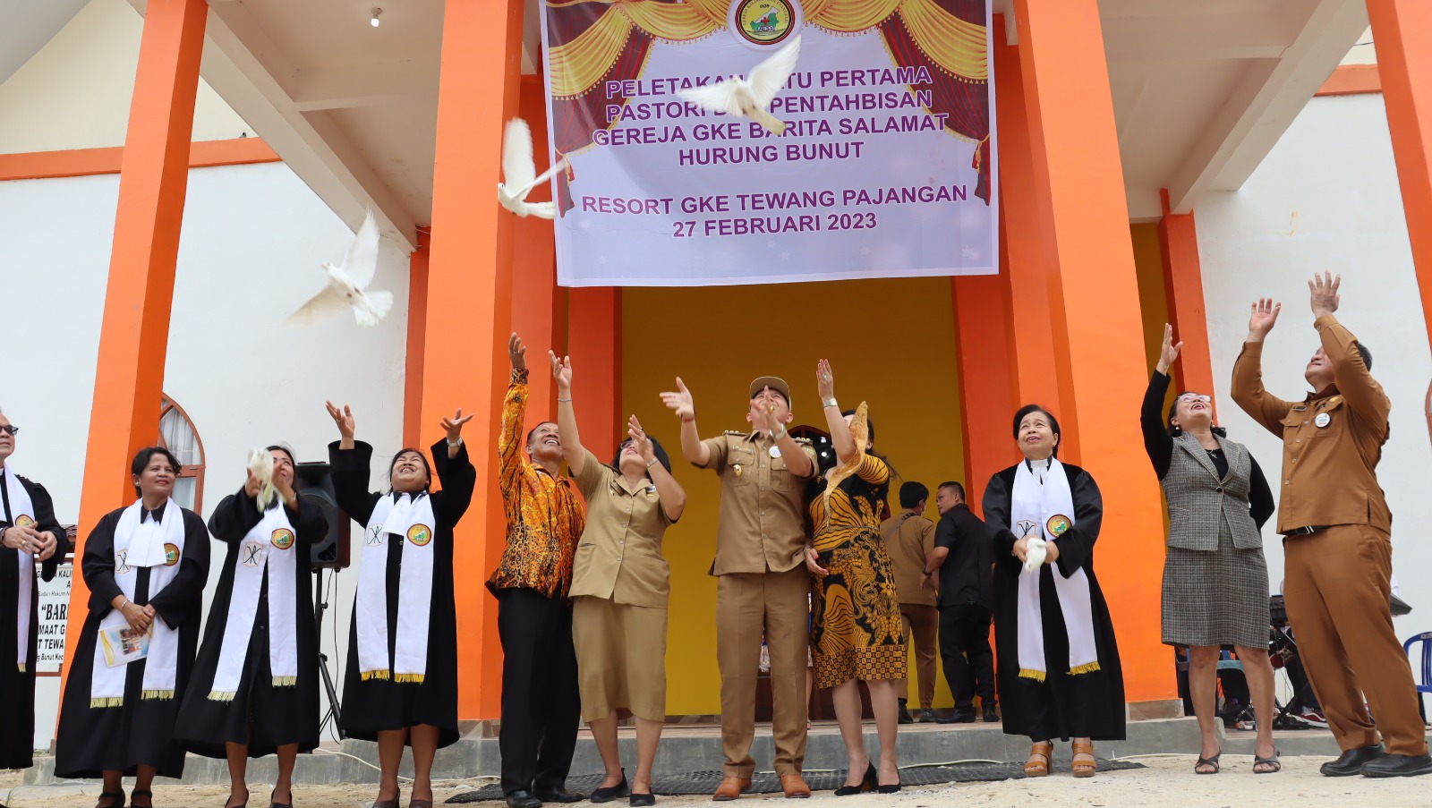 Bupati Gumas Jaya Samaya Monong dalam sambutannya menyampaikan, kita patut mengucap syukur kepada tuhan kita Yesus Kristus, yang pada hari ini kita dapat melakukan peletakan batu pertama Pastori dengan dilangsungkan pentahbisan dan peresmian gereja GKE Barita Salamat di Hurung Bunut pada 27 Pebruari tahun 2023.