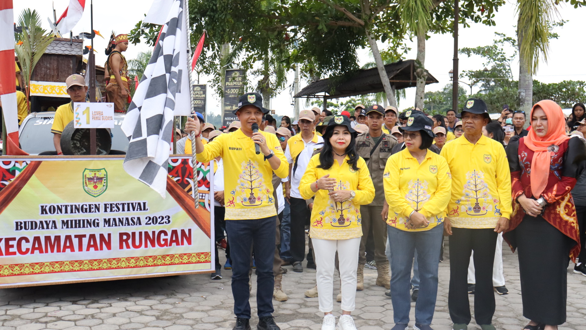 “Kami ucapkan terima kasih atas partisipasi peran serta dari semua peserta yang telah memeriahkan karnaval budaya dan pawai pembangunan hari ini,” ujar Bupati Gunung Mas Jaya Samaya Monong.