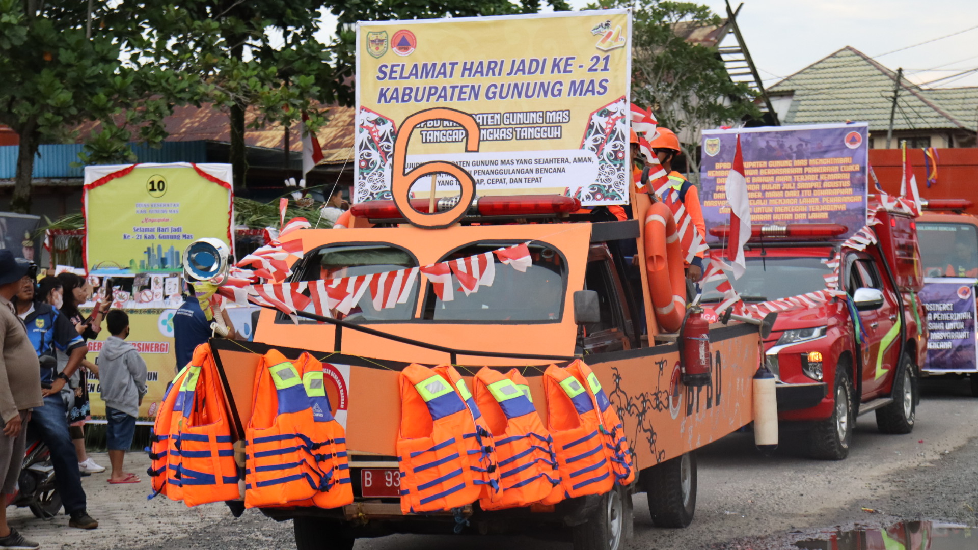 Pawai tersebut berlangsung meriah dengan memperagakan mobil hias yang terdapat corak seni dan budaya dari 12 kecamatan di Kabupaten Gunung Mas dan 28 peserta dari instansi pemerintah daerah, perusahaan daerah dan lainnya.