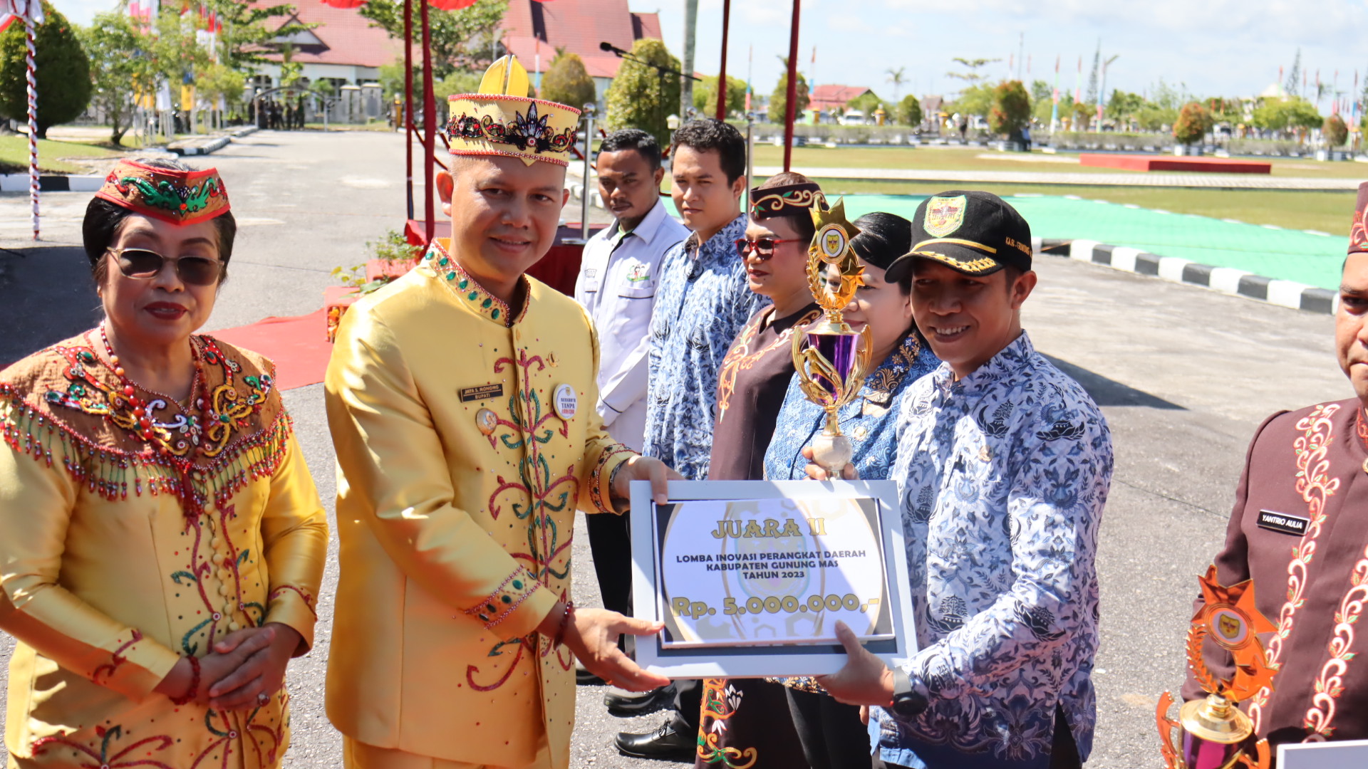 Dalam upacara tersebut dilaksanakan pula kegiatan penyerahan piala dan piagam penghargaan kepada pemenang lomba inovasi daerah tahun 2023 dan penghargaan dalam rangka penilaian penyelenggaraan pelayanan publik perangkat daerah pemerintah Kabupaten Gunung Mas oleh Ombudsman RI Kalimantan Tengah tahun 2022.