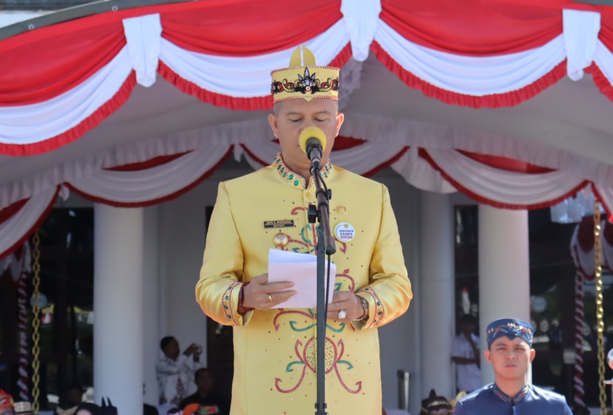 Kuala Kurun – Pemerintah Kabupaten Gunung Mas gelar upacara peringatan Hari Ulang Tahun (HUT) ke-21 Kabupaten Gunung Mas di halaman kantor Bupati, pada Rabu, (21/6/2023).
