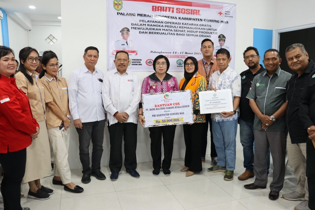 Pelaksanaan kegiatan bakti sosial operasi katarak gratis ini juga, sambung Waltiana, dari Hibah PMI Kabupaten Gunung Mas, dan didukung oleh donatur gabungan perusahaan kelapa sawit indonesia (GAPKI) dan Bank Pembangunan Kalteng.