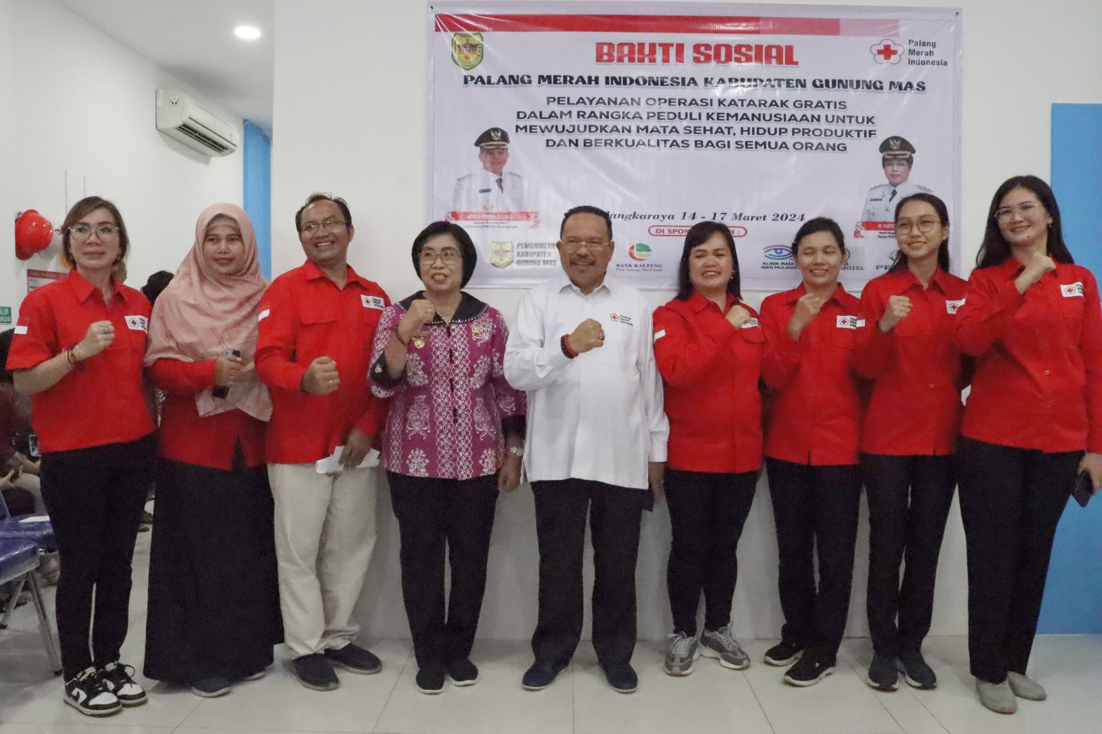 Bakti sosial operasi katarak diselenggarakan oleh Palang Merah Indonesia (PMI) Kabupaten Gunung Mas, yang dibuka secara resmi Oleh Sekretaris Daerah (Sekda) Provinsi Kalimantan Tengah, Bpk. H. Nuryakin, sekaligus sebagai Ketua PMI Provinsi Kalimantan Tengah, dengan dihadiri Staf Ahli Gubernur Kalteng, Pimpinan Gabungan Kelapa Sawit Indonesia (GAPKI), Dirut Bank Kalteng Palangkaraya, Dokter spesialis mata, Kepala RSUD Kab. Gunung Mas, Kepala DP2KBPPPA Kab. Gunung Mas, Ketua Panitia Penyelenggara operasi Katarak, Anggota PMI Palangkaraya dan PMI Gunung Mas dan pasien penderita katarak yang akan di operasi.
