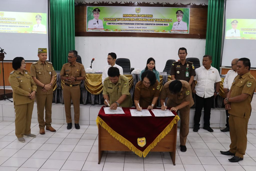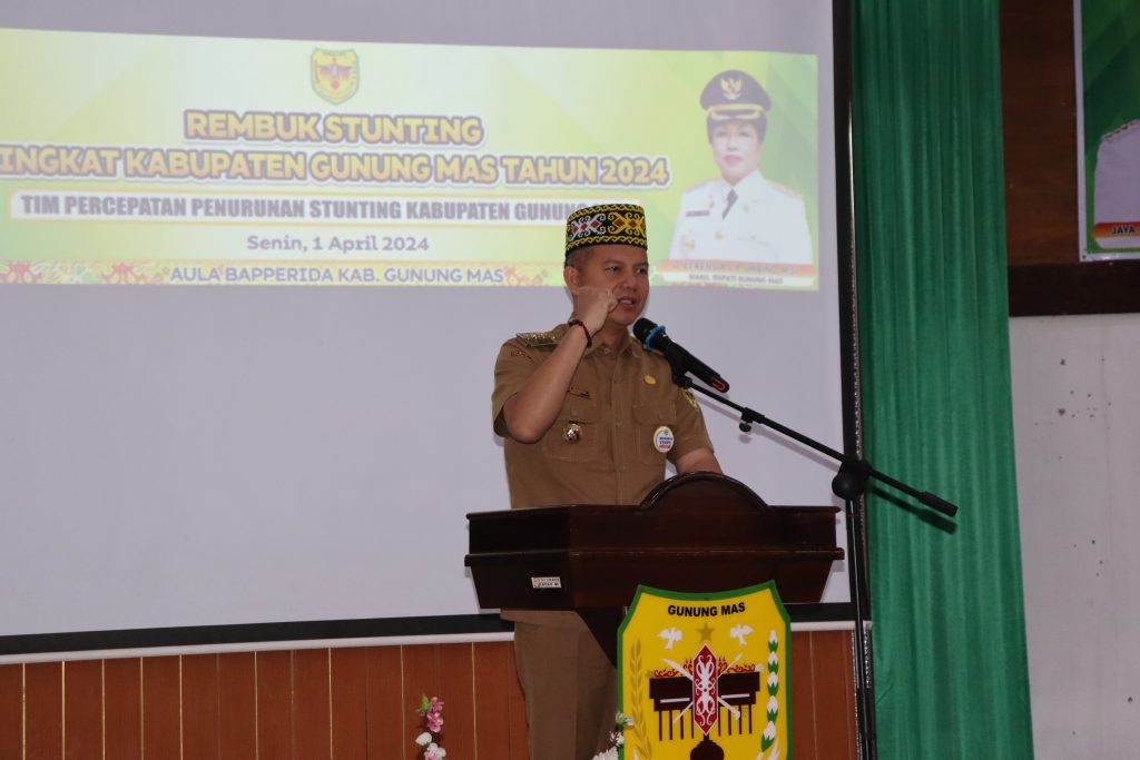 mmc.gunungmaskab.go.id – Bupati Gunung Mas (Gumas) Jaya Samaya Monong membuka kegiatan Rembuk Stunting Tingkat Kabupaten Gunung Mas Tahun 2024, di aula Badan Perencanaan Pembangunan, Riset dan Inovasi Daerah (Bapperida) Gumas, Senin (1/4/2024).