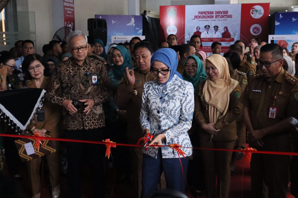 Adapun pembukaan pameran inovasi penurunan stunting ditandai dengan pengguntingan pita oleh Ketua TP-PKK Prov. Kalteng, Ivo Sugianto Sabran.