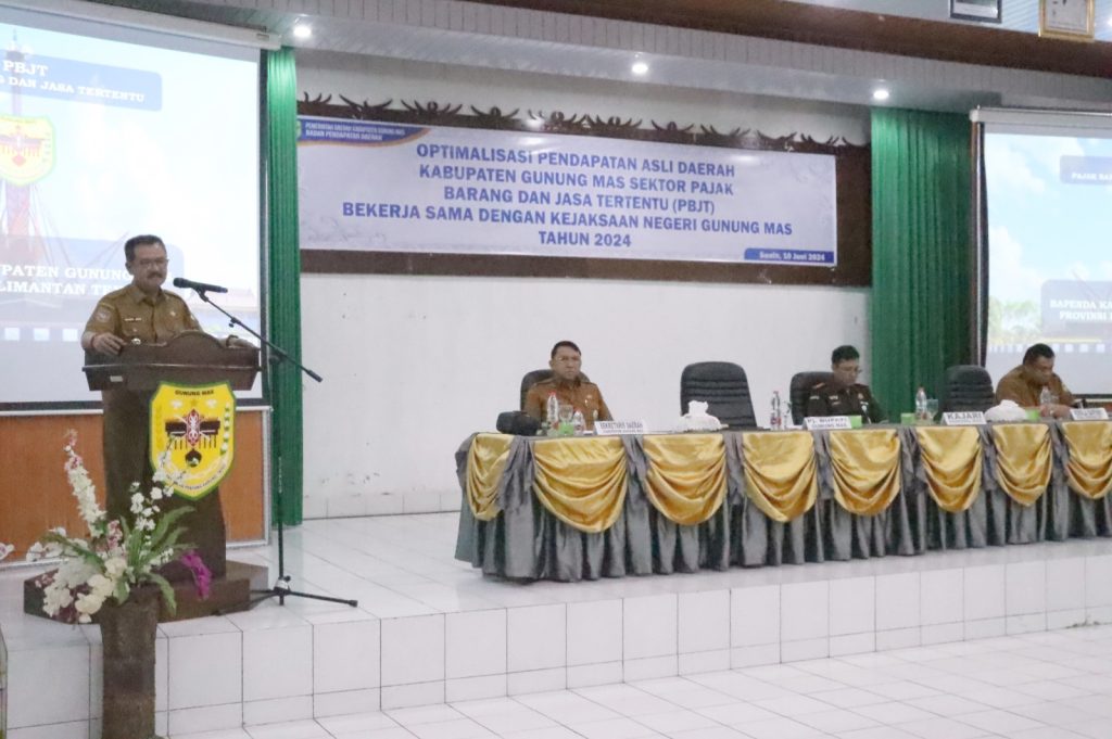 mmc.gunungmaskab.go.idKuala Kurun – Penjabat (PJ) Bupati Gunung Mas (Gumas) Herson B. Aden, membuka kegiatan Optimalisasi Pendapatan Asli Daerah (PAD) Sektor Pajak Barang Jasa Tertentu (PBJT) kerjasama dengan Kejaksaan Negeri Gunung Mas tahun 2024, yang dilaksanakan di aula Bapperida Gumas, Senin(10/6/2024).