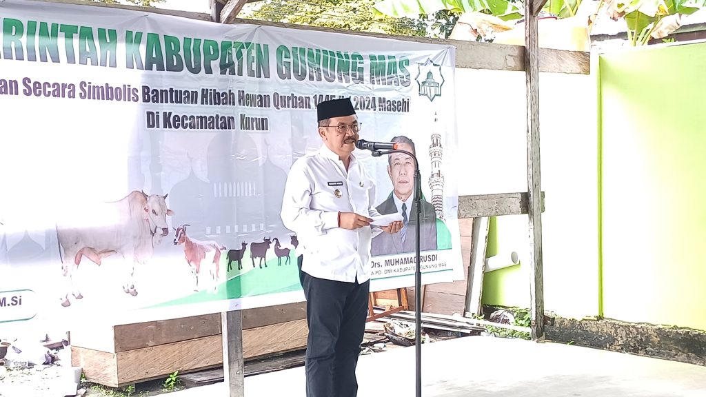 Dirinya menyampaikan bahwa Pemkab Gumas memberikan bantuan berupa dana hibah kepada Dewan Masjid Kab. Gumas untuk pembelian hewan kurban. Selanjutnya, Dewan Masjid Kab. Gumas yang menyalurkan berupa hewan kurban untuk pengurus Masjid di kecamatan-kecamatan yang ada di Kab. Gumas.
