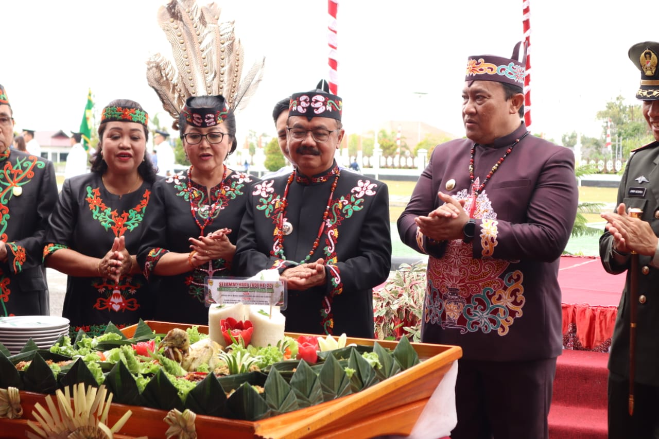 Foto : Potong Tumpeng PJ. Bupati Gumas Bersama Wagub Kalteng H. Edy Protowo dan undangan Lainnya
