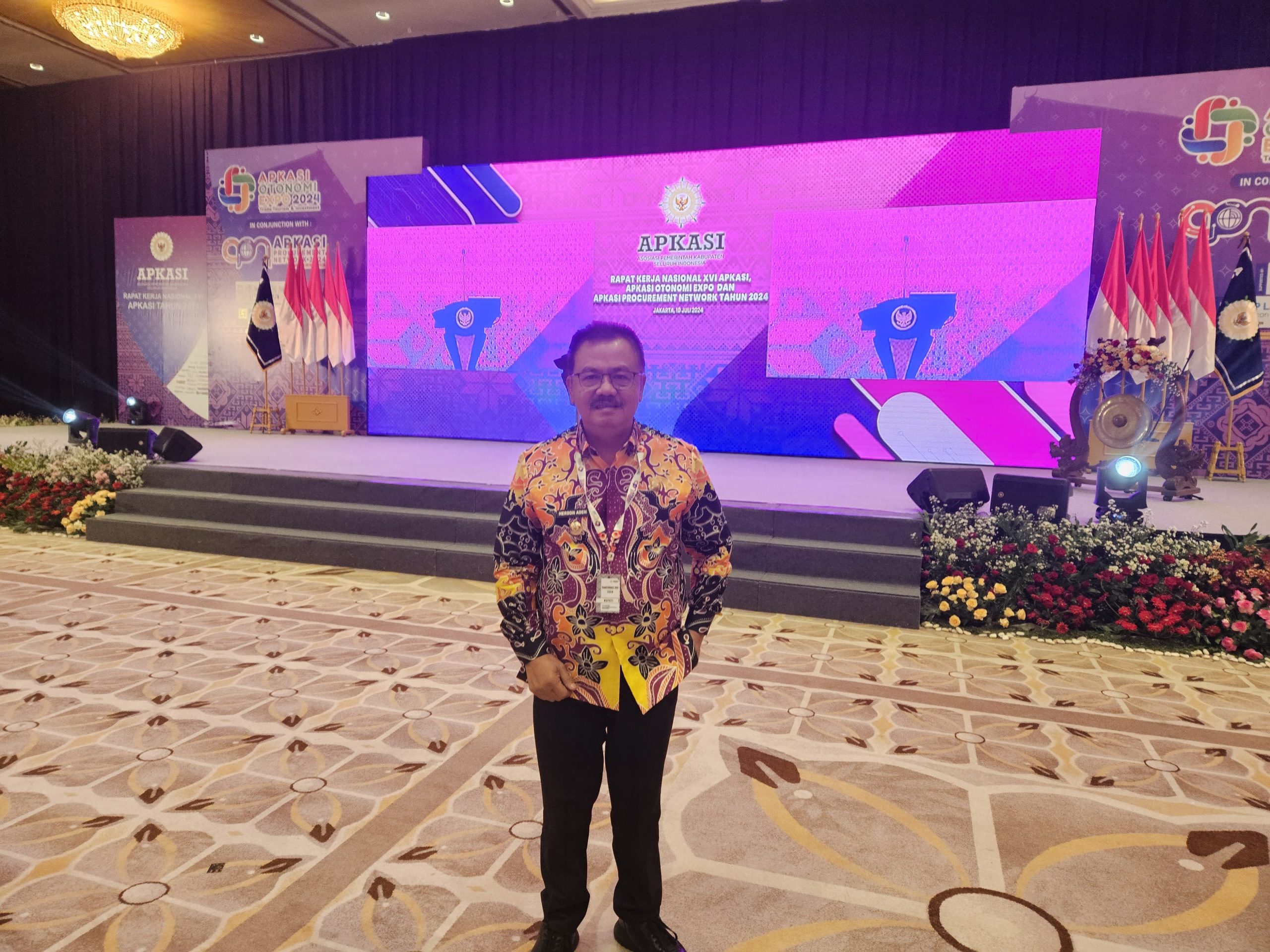 MMCGumas – Kuala Kurun – Penjabat (Pj) Bupati Gunung Mas (Gumas), Herson B Aden beserta jajarannya, menghadiri kegiatan Rapat Kerja Nasional (Rakernas) XVI Asosiasi Pemerintah Kabupaten Seluruh Indonesia (Apkasi) XVI sekaligus pembukaan Apkasi Otonomi Expo 2024 yang bertempat di Jakarta Convention Center, Rabu (10/07/2024).