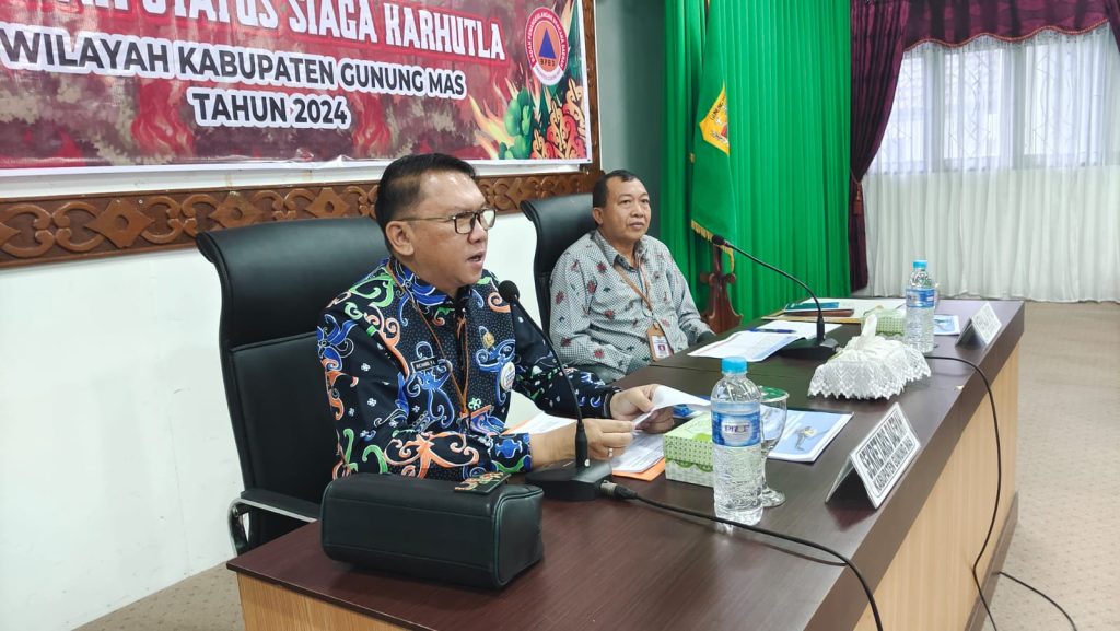 MMCGumas – Kuala Kurun – Sekretaris Daerah (Sekda) Gunung Mas (Gumas), Richard, menghadiri sekaligus membuka kegiatan Rapat Koordinasi Penetapan Status Siaga Karhutla Kab. Gumas Tahun 2024 yang bertempat di Ruang Rapat Lantai 1 Kantor Bupati Gumas, Jumat (02/08/2024).