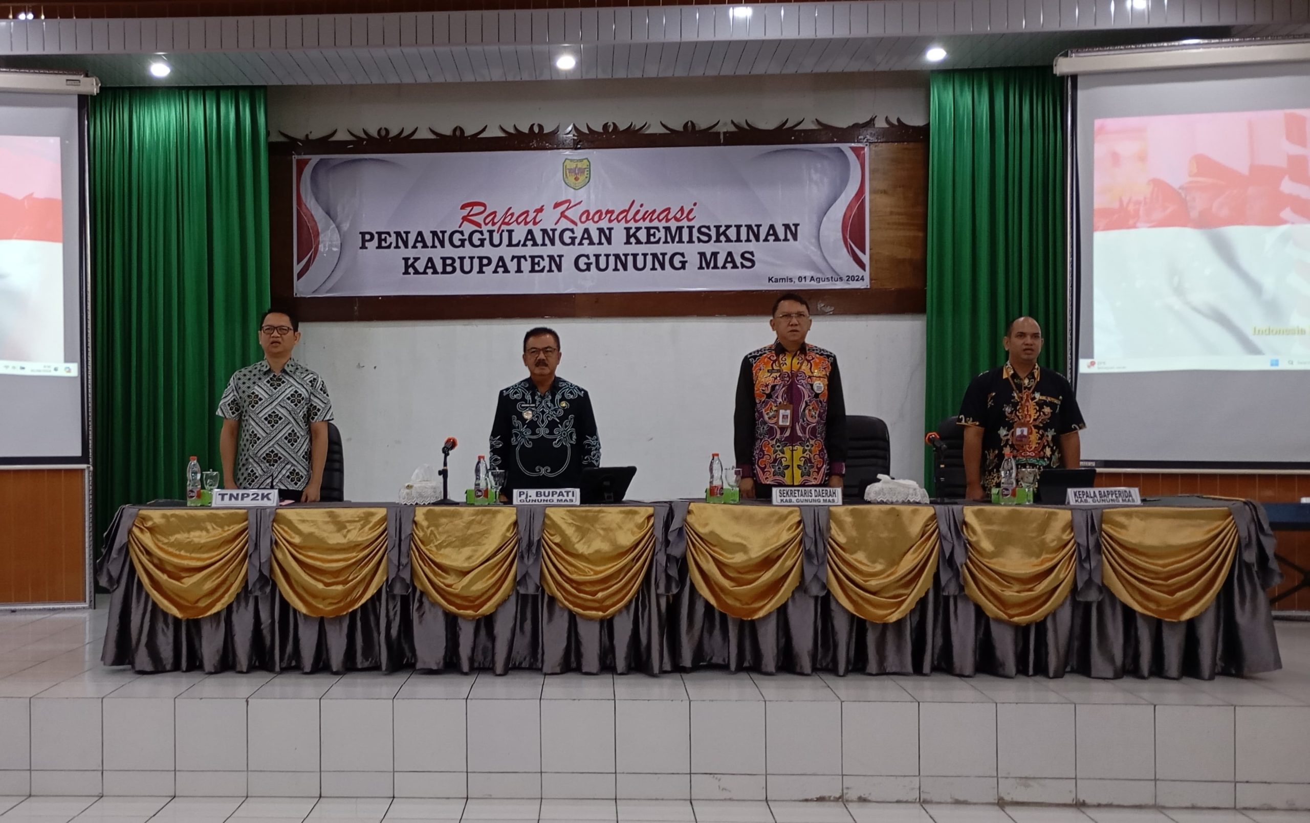 Adapun kegiatan Rakor ini dilakukan bertujuan untuk melaksanakan koordinasi dalam upaya percepatan penanggulangan kemiskinan daerah Kabupaten Gunung Mas dalam penerapan strategi perencanaan percepatan penanggulangan kemiskinan di Kabupaten Gunung Mas dan juga untuk meningkatkan akselerasi dan koordinasi lintas kelembagaan dalam upaya percepatan penanggulangan kemiskinan daerah Kabupaten Gunung Mas.