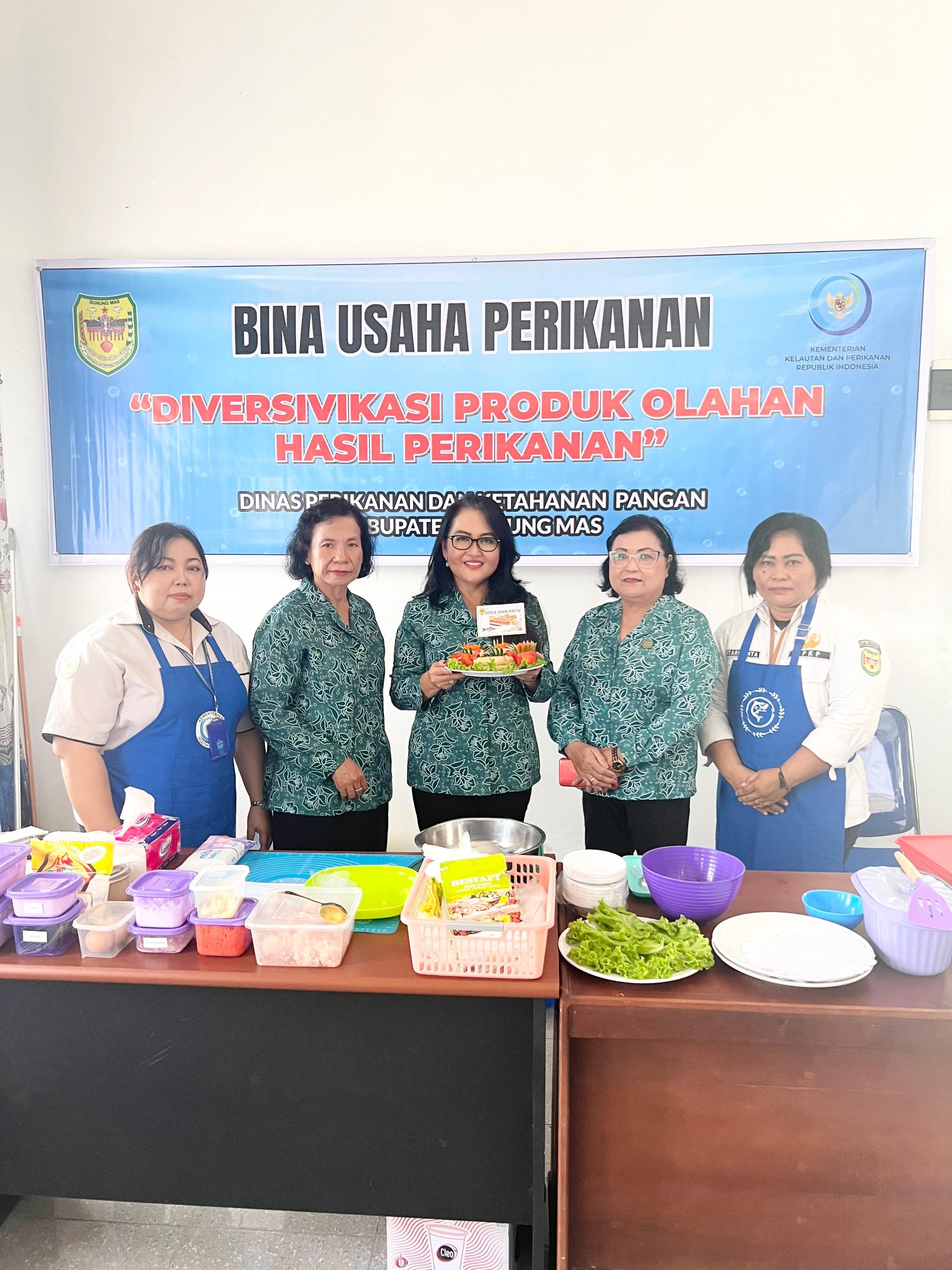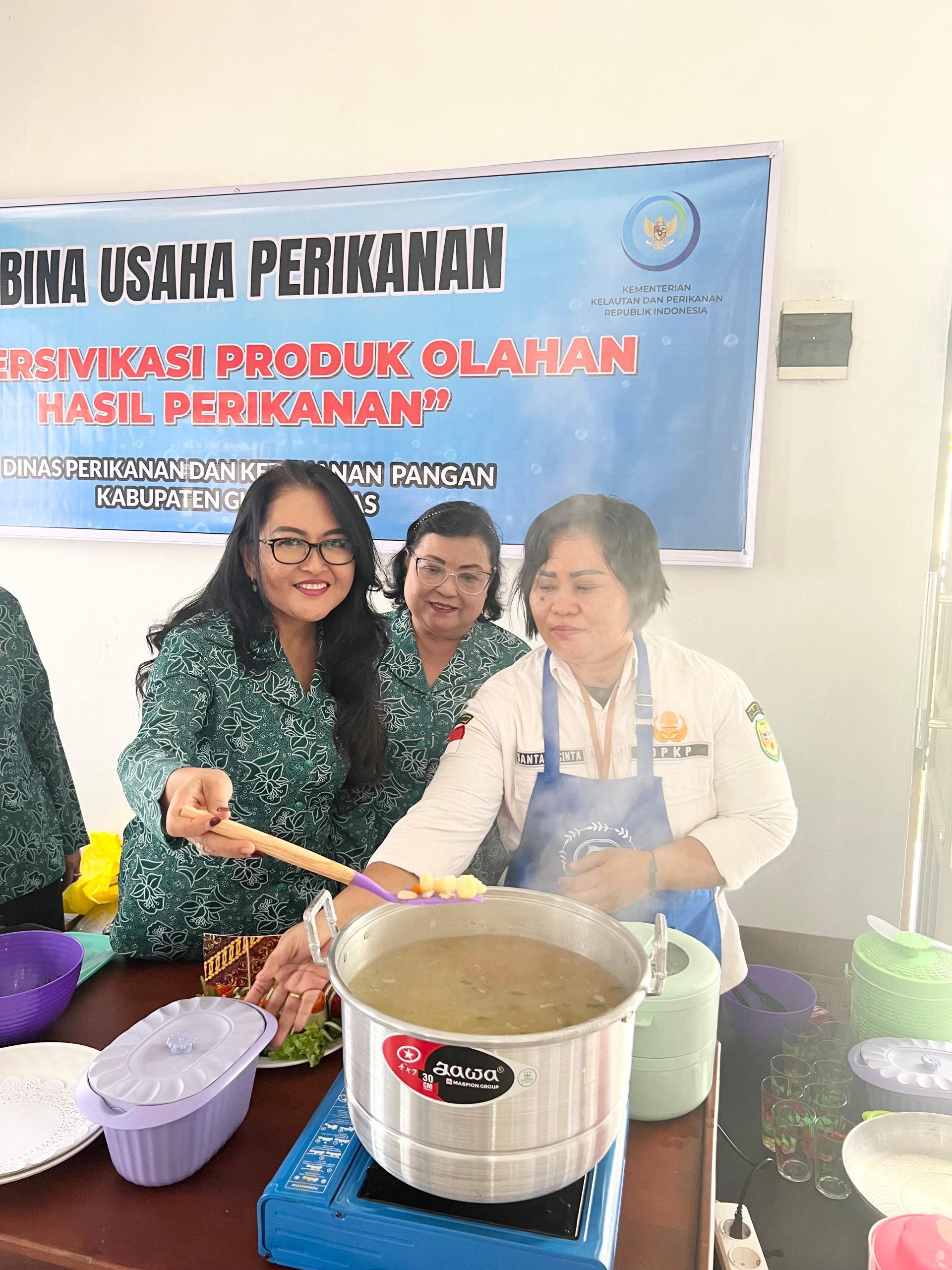 “Salah satu upaya yang dapat dilakukan untuk meningkatkan konsumsi hasil perikanan adalah dengan meningkatkan pengetahuan masyarakat tentang pengolahan hasil perikanan yaitu melalui diversifikasi olahan hasil perikanan. Kegiatan Gemarikan ini diharapkan sebagai upaya untuk meningkatkan nilai konsumsi olahan hasil perikanan, sehingga ikut berperan dalam penanganan penurunan angka stunting di Desa Teluk Lawah ini. Ikan dapat diolah menjadi berbagai menu hidangan yang menarik tentunya tanpa mengabaikan mutu dan kehigienisannya,” ucap Kepala DPKP Kab. Gumas Eigh Manto.