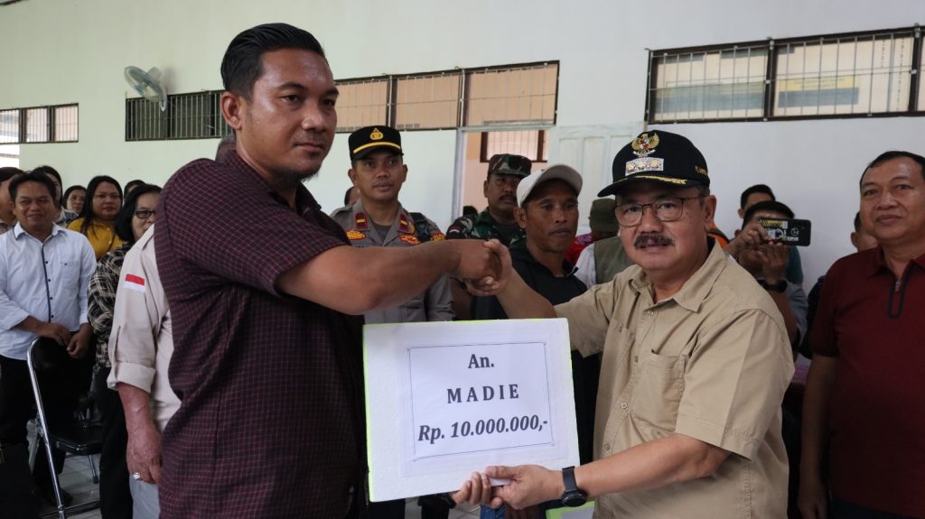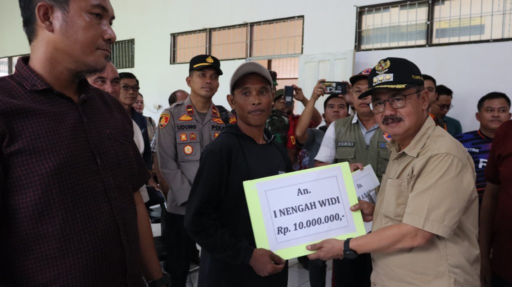 Bantuan tersebut diberikan kepada dua keluarga masing-masing sebesar 10 Juta Rupiah a.n. I Nengah Widi dari Desa Tumbang Kajuei dan a.n. Madie dari Desa Tumbang Lapan.