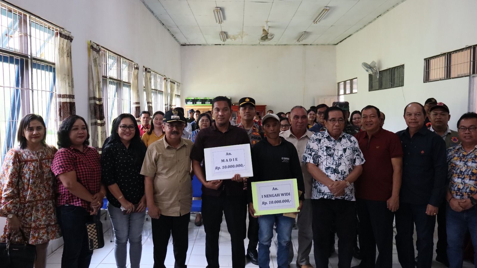 Bantuan tersebut diberikan kepada dua keluarga masing-masing sebesar 10 Juta Rupiah a.n. I Nengah Widi dari Desa Tumbang Kajuei dan a.n. Madie dari Desa Tumbang Lapan.